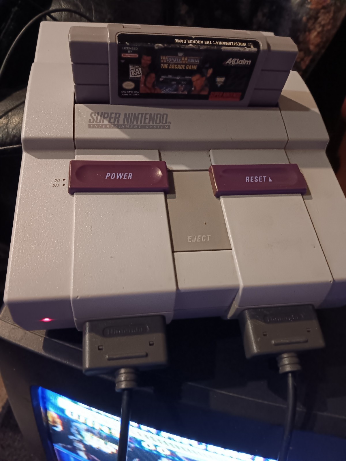 как выглядит Super Nintendo SNES Console Bundle w 2 Controllers Game Works Wrestlemania Compl фото