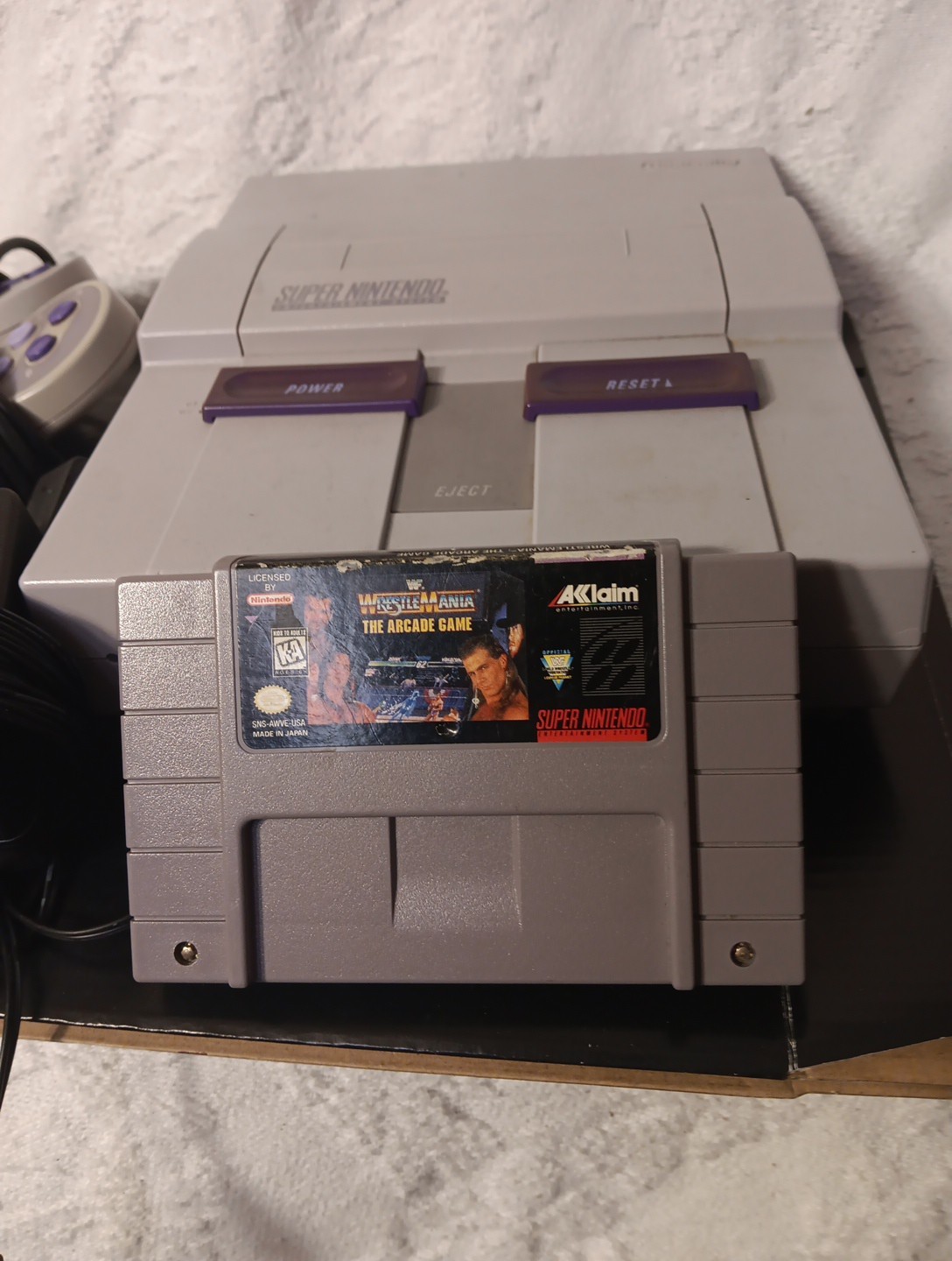 Super Nintendo SNES Console Bundle w 2 Controllers Game Works Wrestlemania Compl