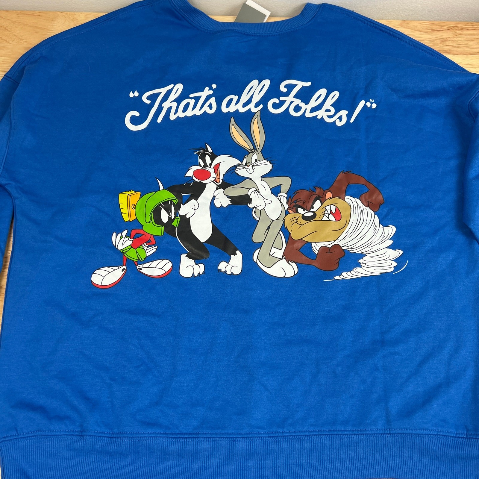 Looney Tunes Women's Blue That's All Folks Graphic Sweatshirt - Size Large - NWT
