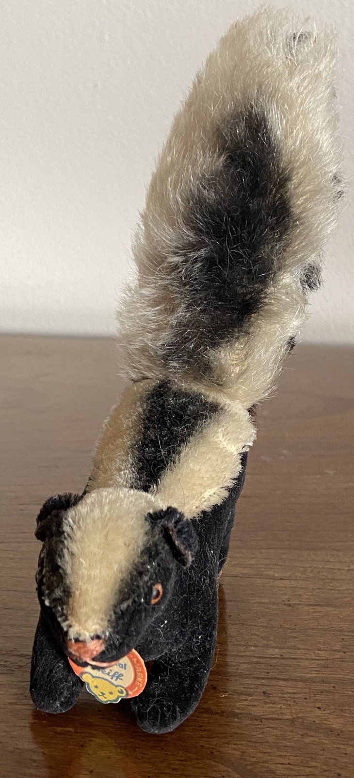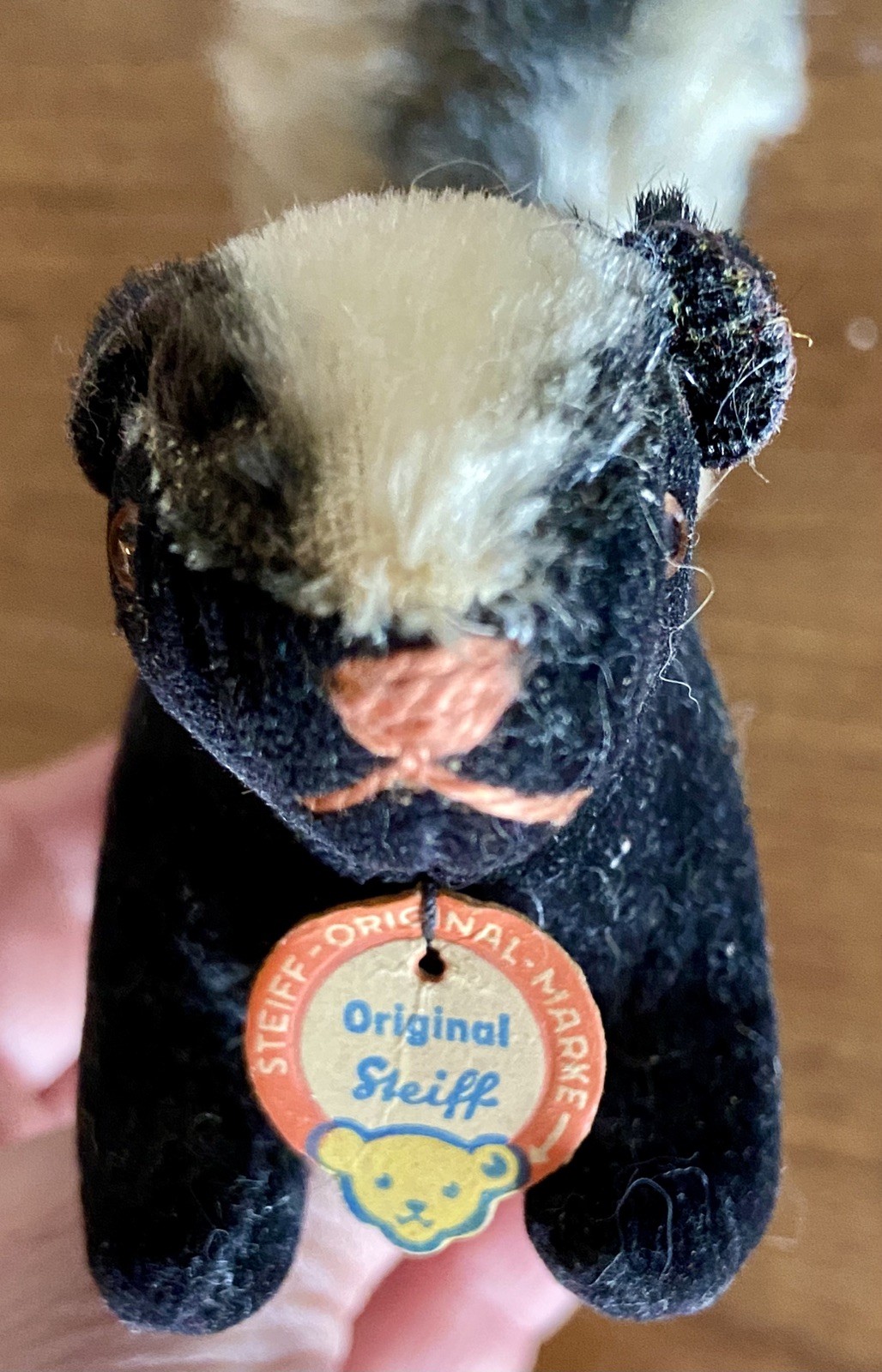 RARE VTG Small Velvet Mohair Steiff Skunk Chest Tag 6 L 5 Tall So Cute