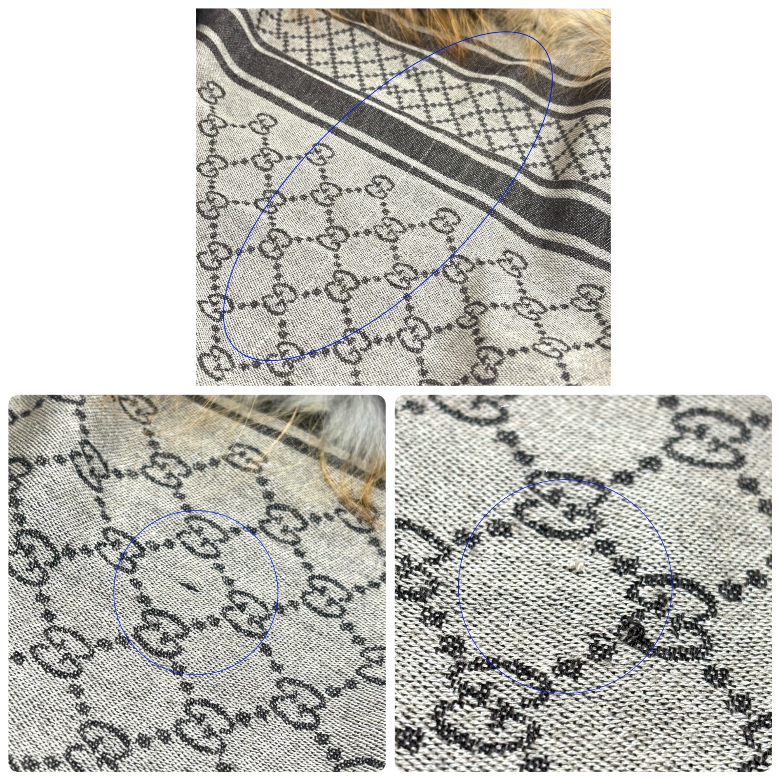 как выглядит GUCCI Vintage GG Monogram Fox Fur Snap Hook Shawl Scarf Wrap Brown Silk фото