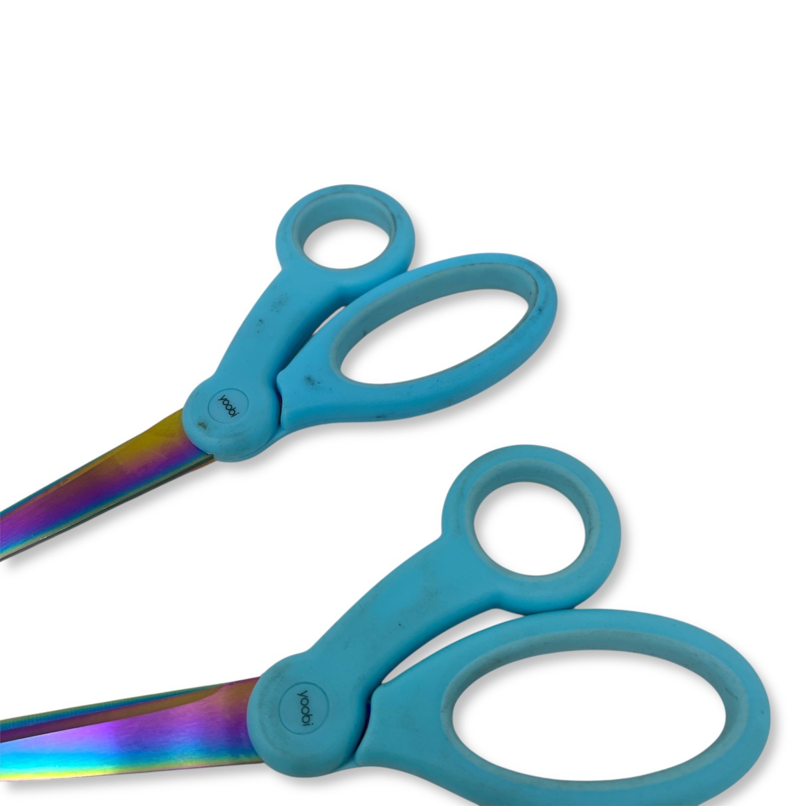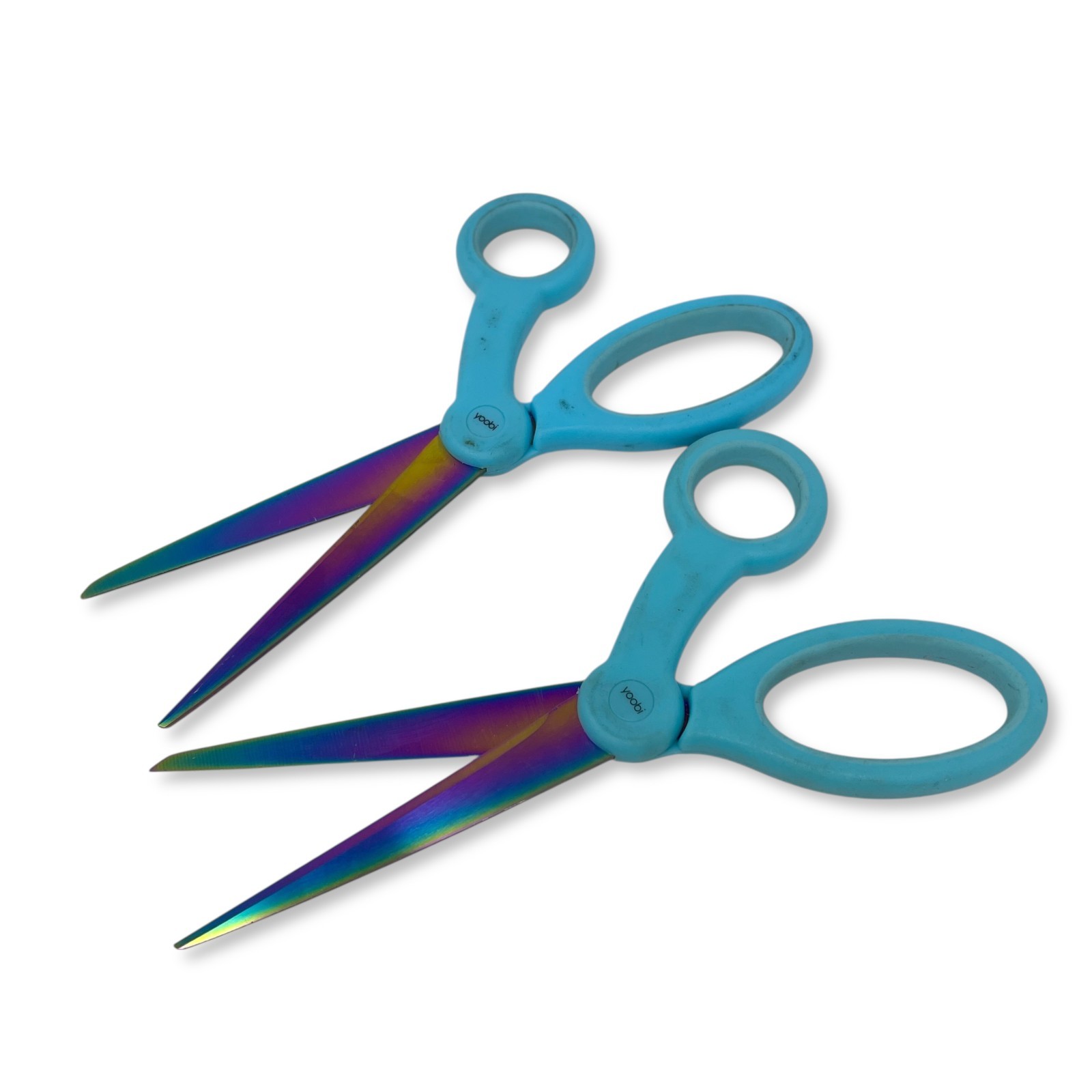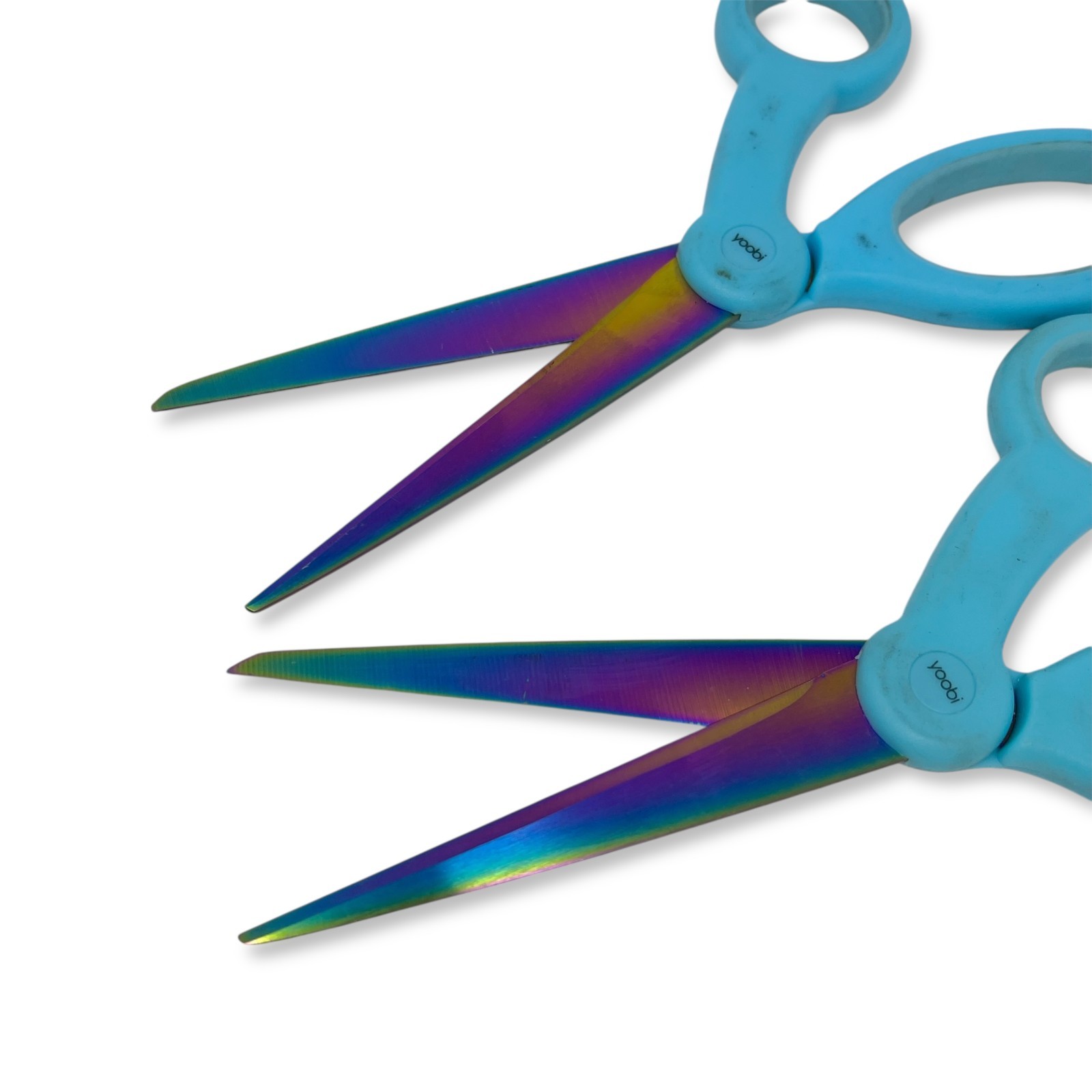 Yoobi Multi-Purpose Scissors, Blue Handle Rainbow Iridescent Blades, 2 Pcs