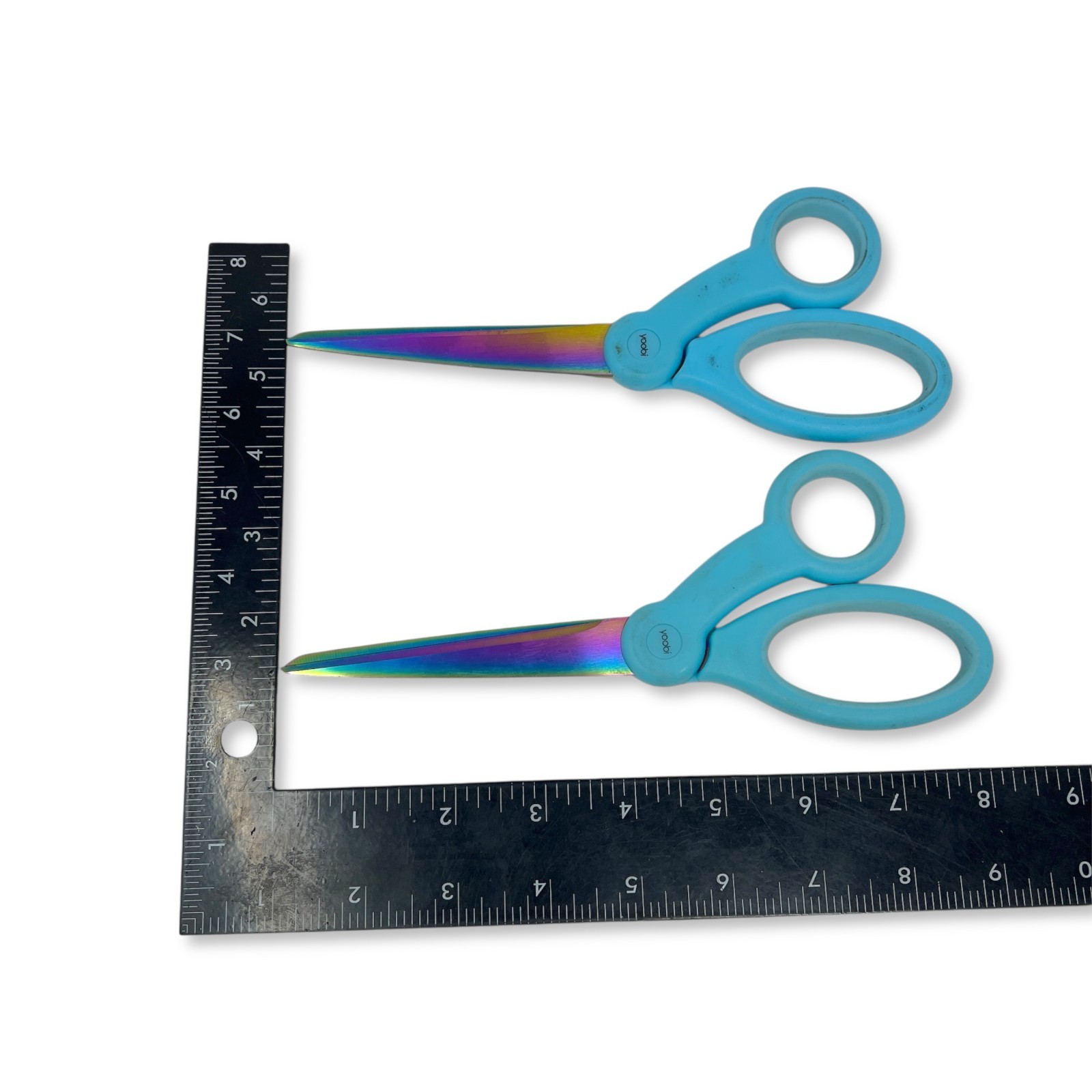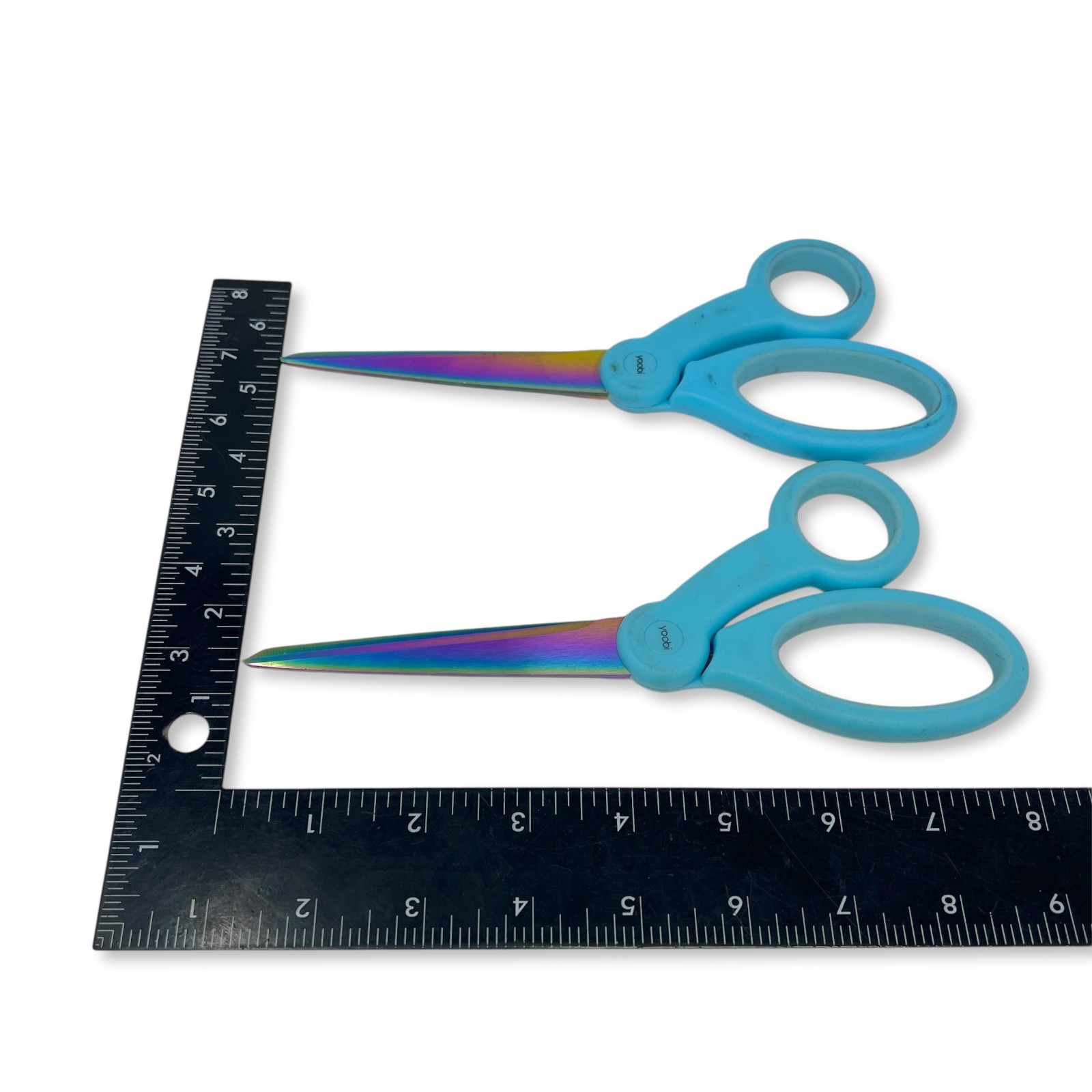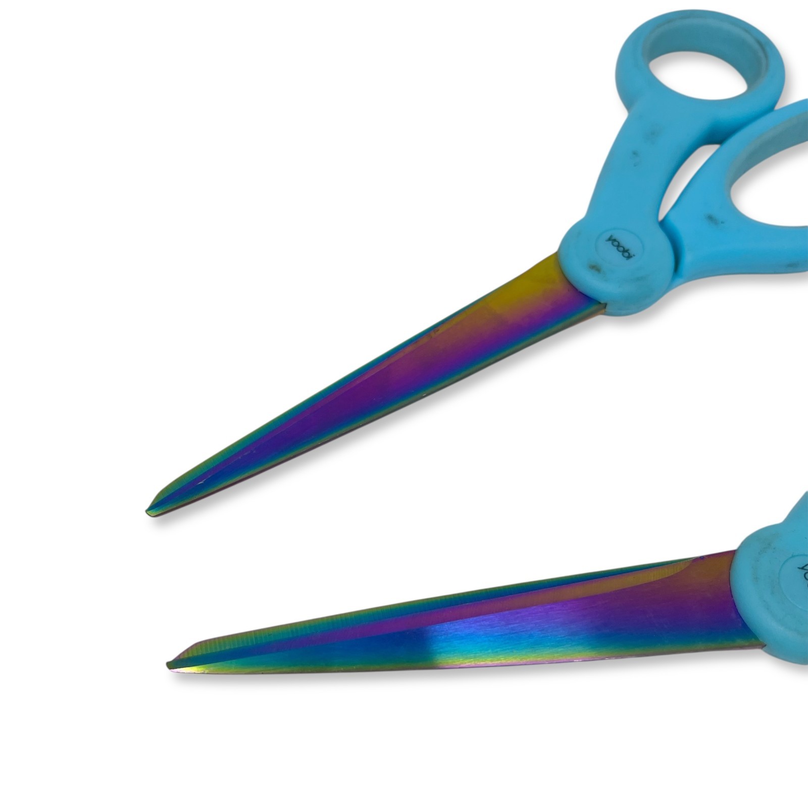 Yoobi Multi-Purpose Scissors, Blue Handle Rainbow Iridescent Blades, 2 Pcs