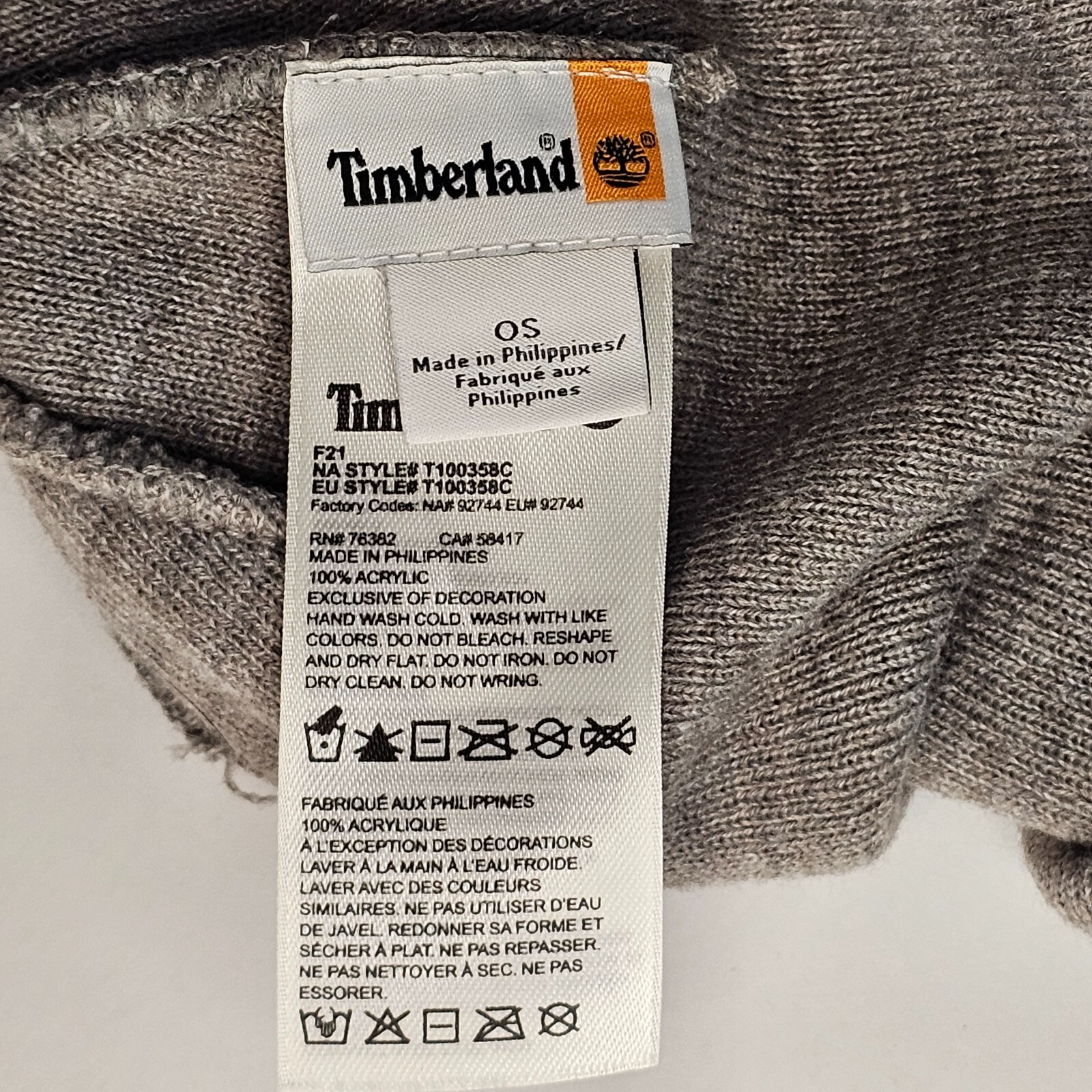 как выглядит Timberland Beanie Watch Hat Gray Cuffed Front Logo Double Layer Warm Cozy Winter фото