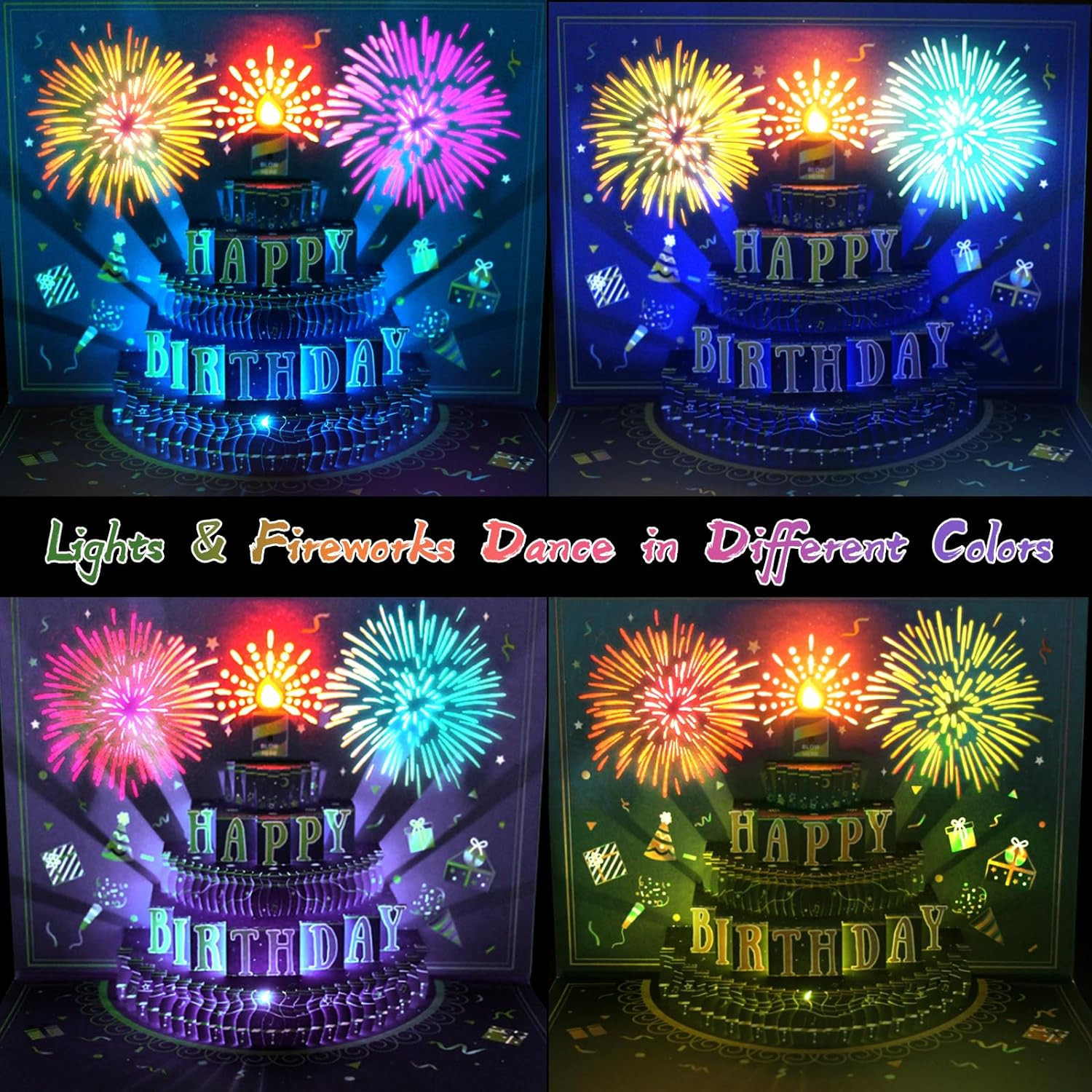 3D Pop Up Birthday Cards Musical LED Lights Greeting Cards for Mom Dad Kids