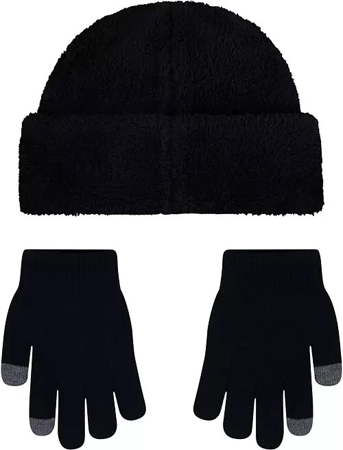 как выглядит NIKE COZY PEAK SHERPA BEANIE HAT / TOUCHSCREEN GLOVES SET Youth Size 8-20 BLACK фото