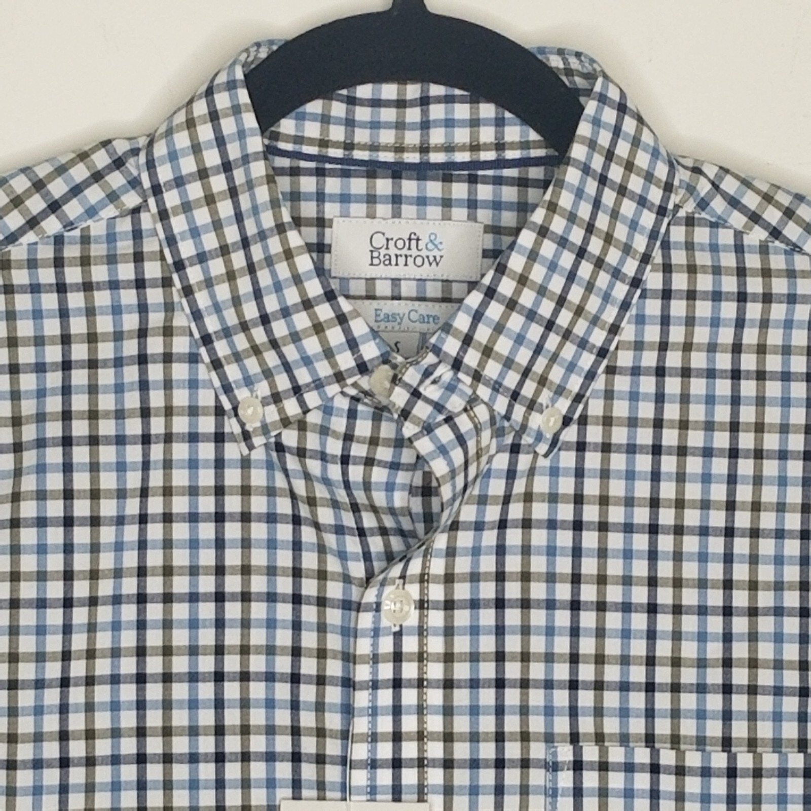 NWT Mens Croft Barrow Size S Easy Care Button Up Shirt Olive White Blue Check