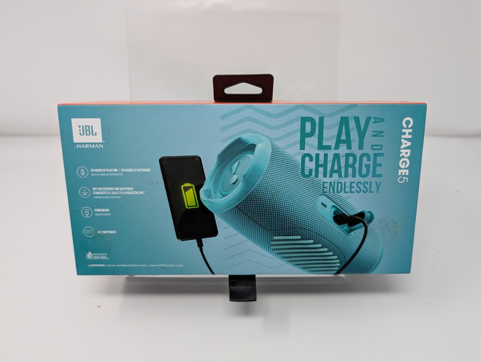 Open Box, JBL Charge 5 Portable Waterproof Speaker with Powerbank, Teal