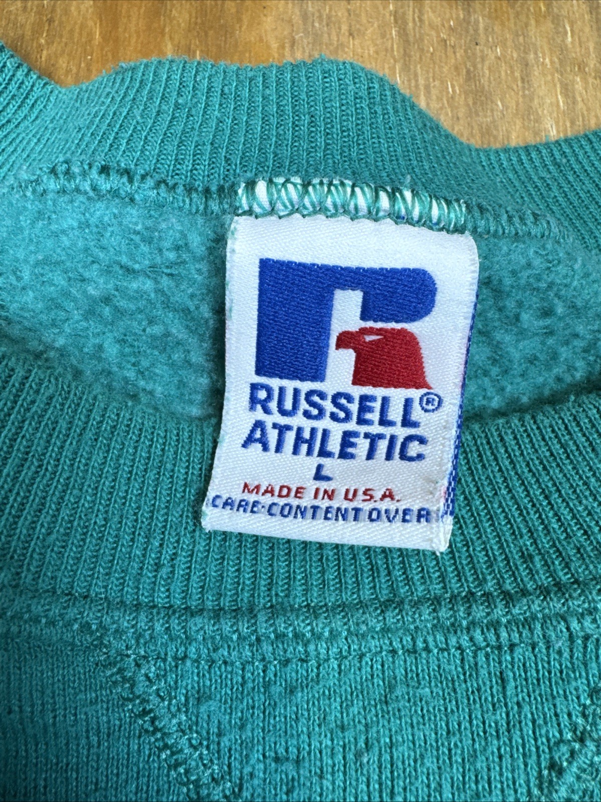 как выглядит Vintage 90s Russell Athletic Crewneck Sweatshirt Mens L Green Made in USA фото
