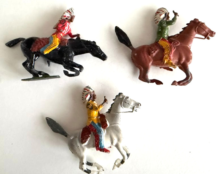 3 Vintage Britains Lead Figures Native Americans Indians on Horseback- England