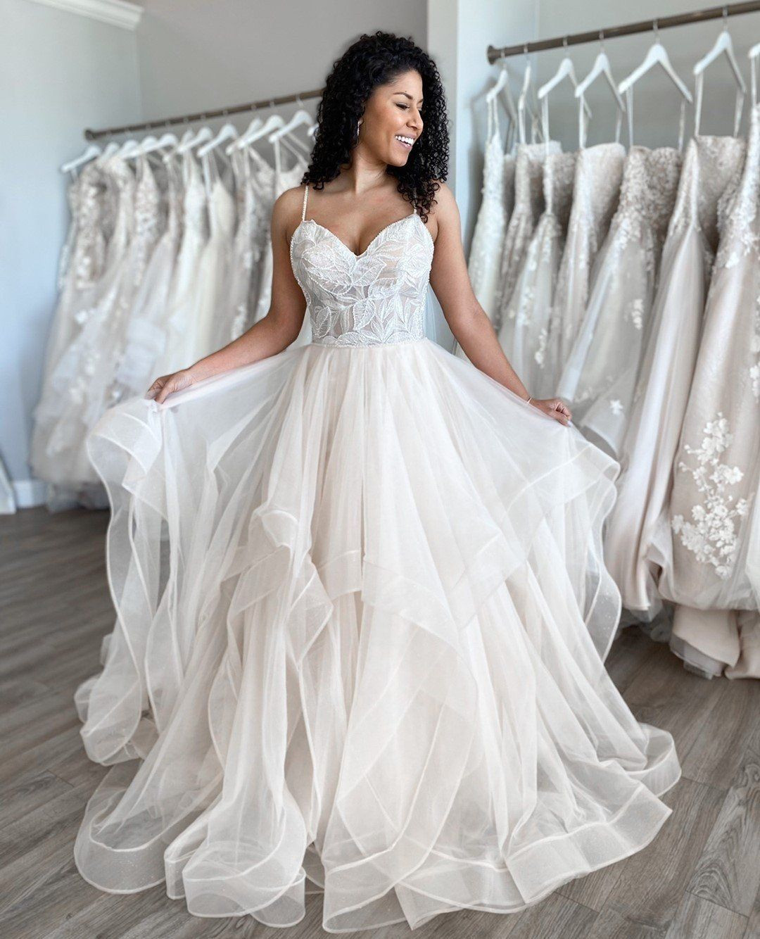 как выглядит Beach Wedding Dresses Spaghetti Straps Lace A Line Ruffles Train Bridal Gowns фото