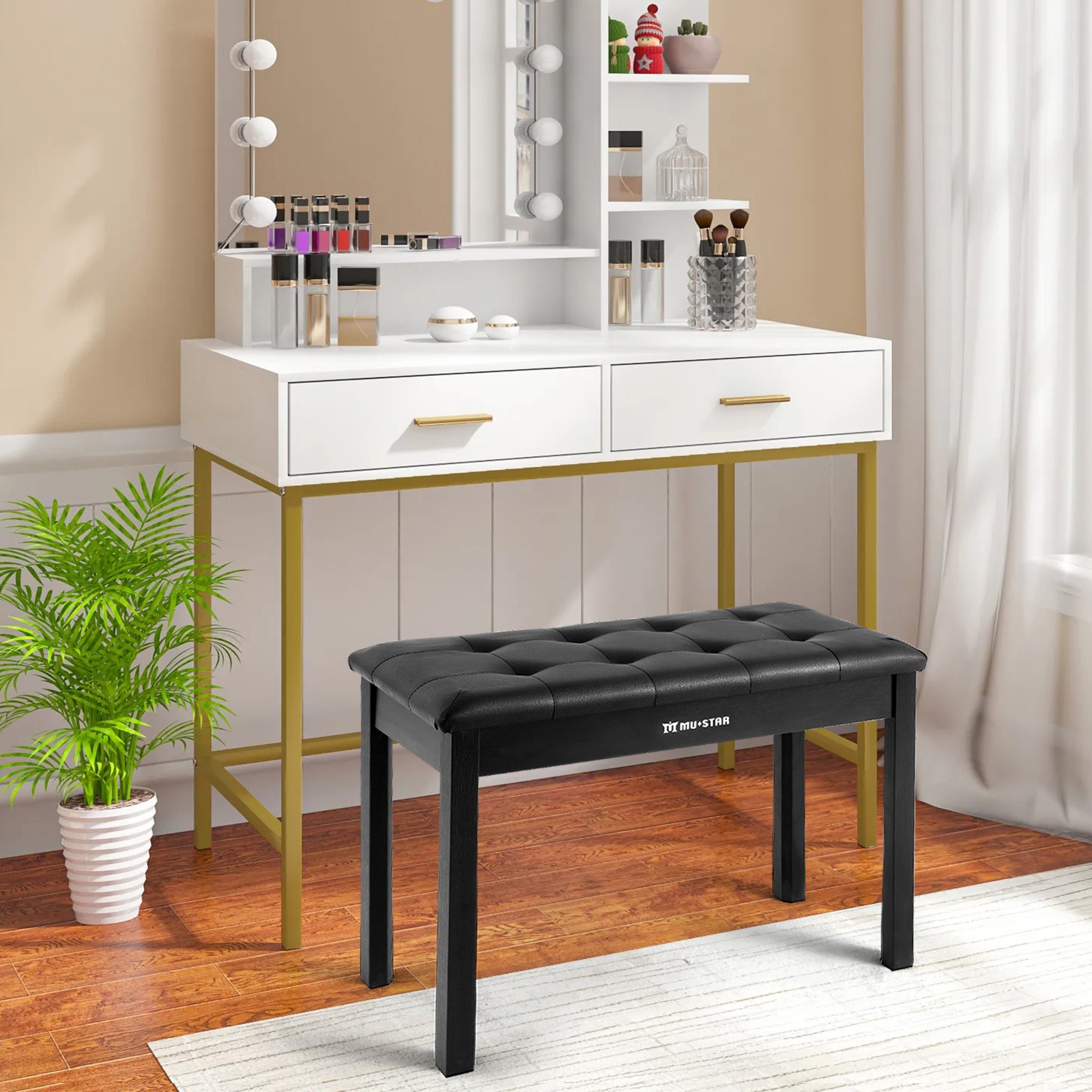 Black Wooden Duet Piano Keyboards Bench Stool with Storage Bookcase Pad Cushion