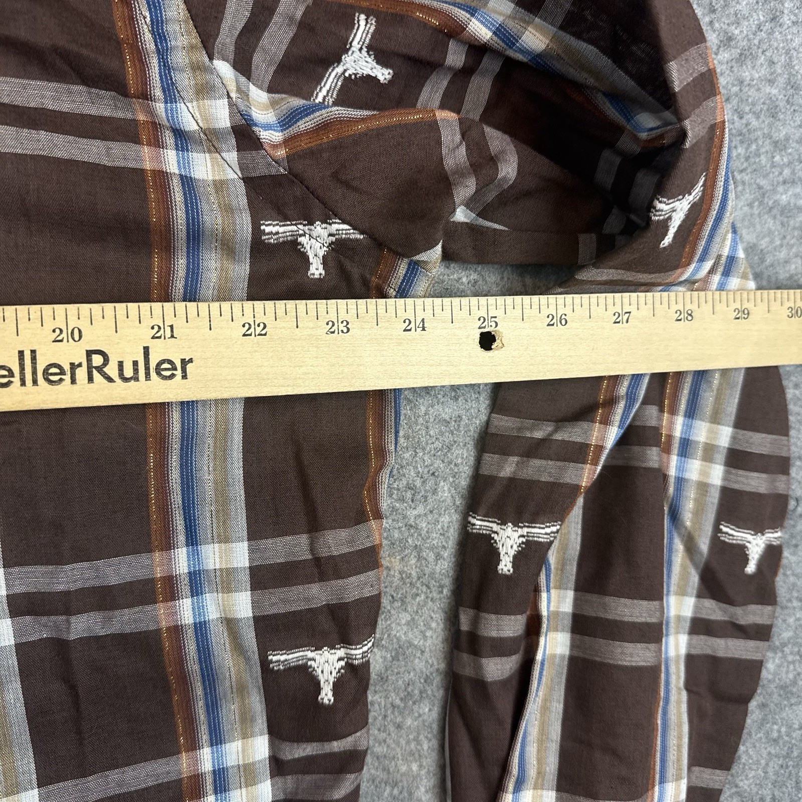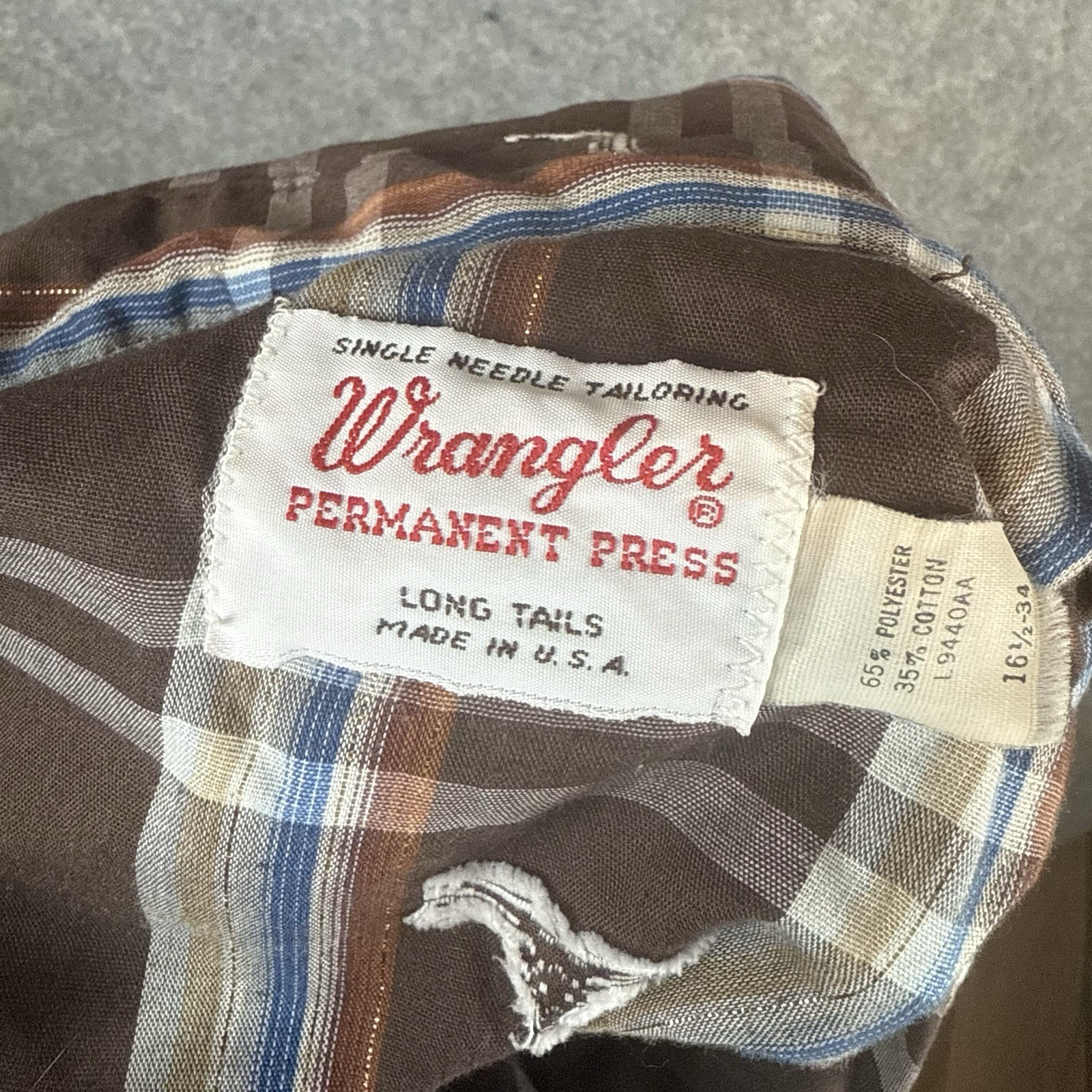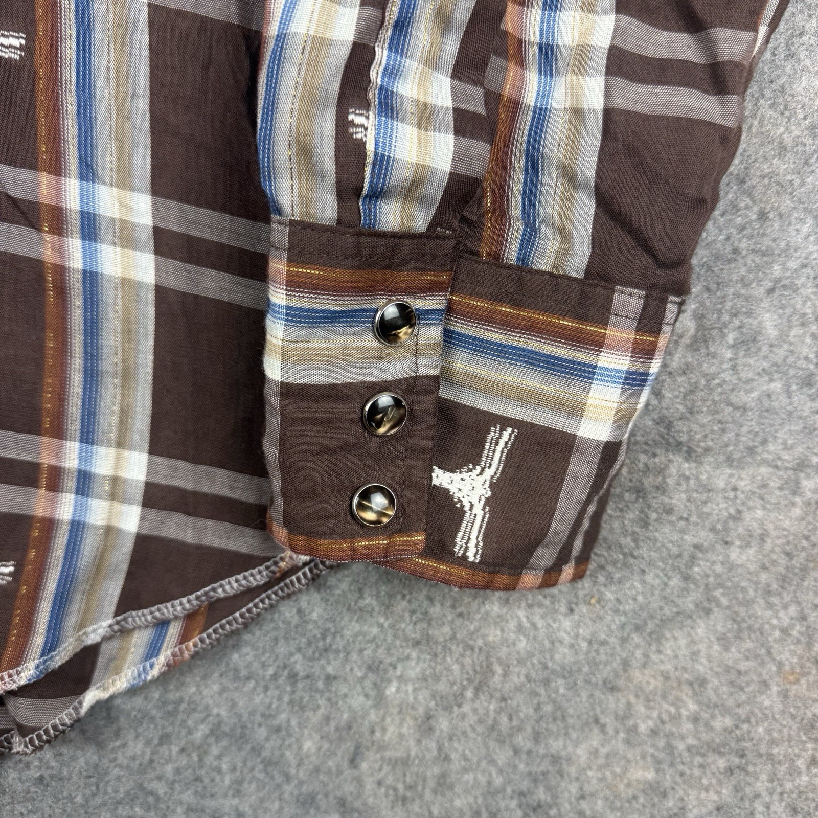 как выглядит VTG Wrangler Shirt Mens 16.5 Permanent Press Long Tails Bull AOP Pearl Snap 70s фото