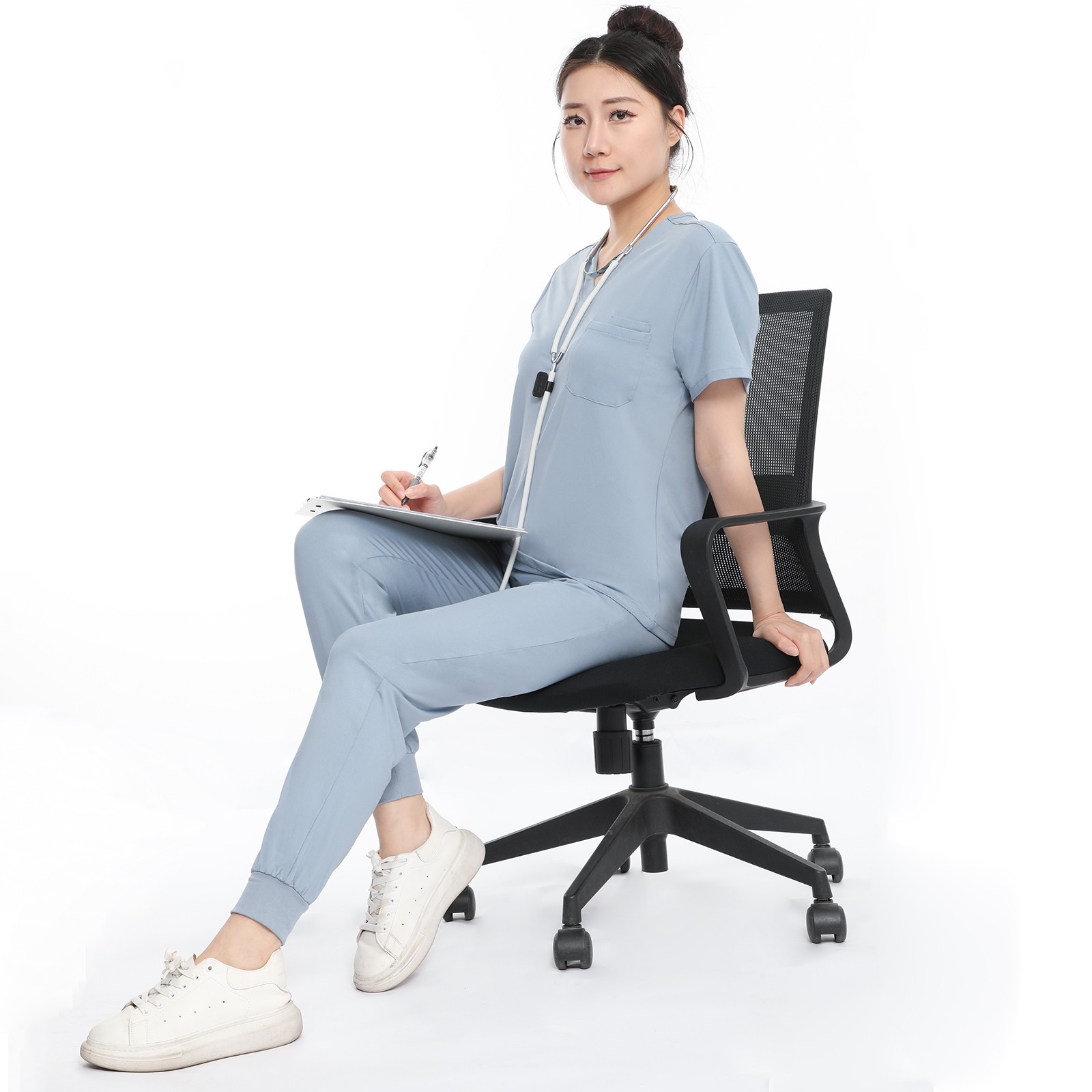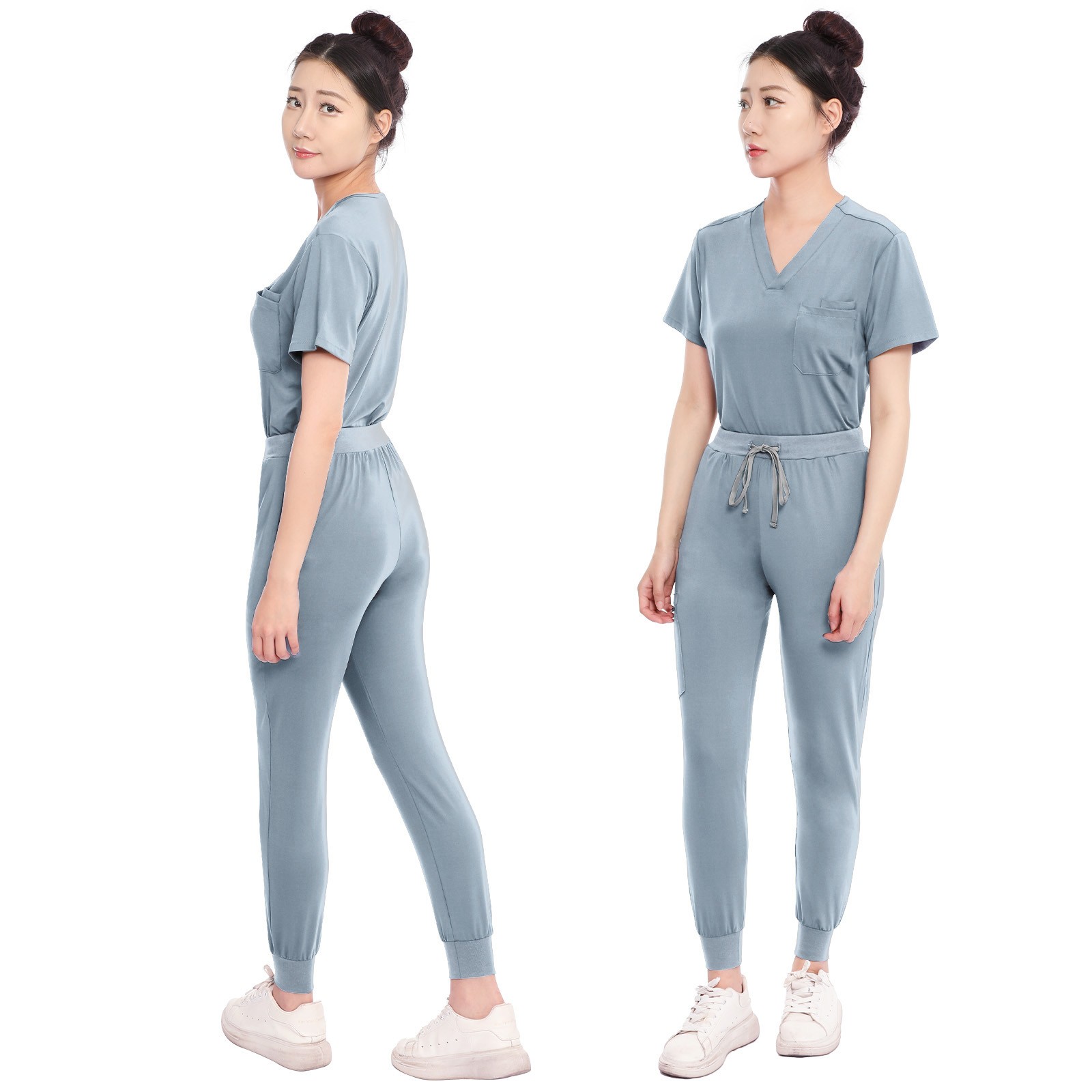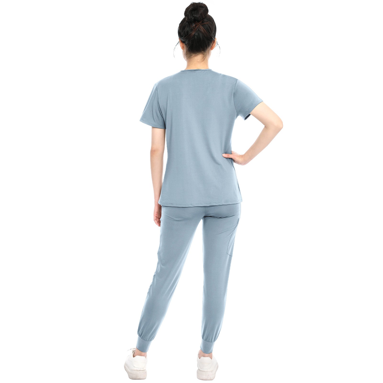 как выглядит Medical Scrubs Set V-Neck Top Jogger Pants with Stretch Uniform Scrub Suit Yoga фото