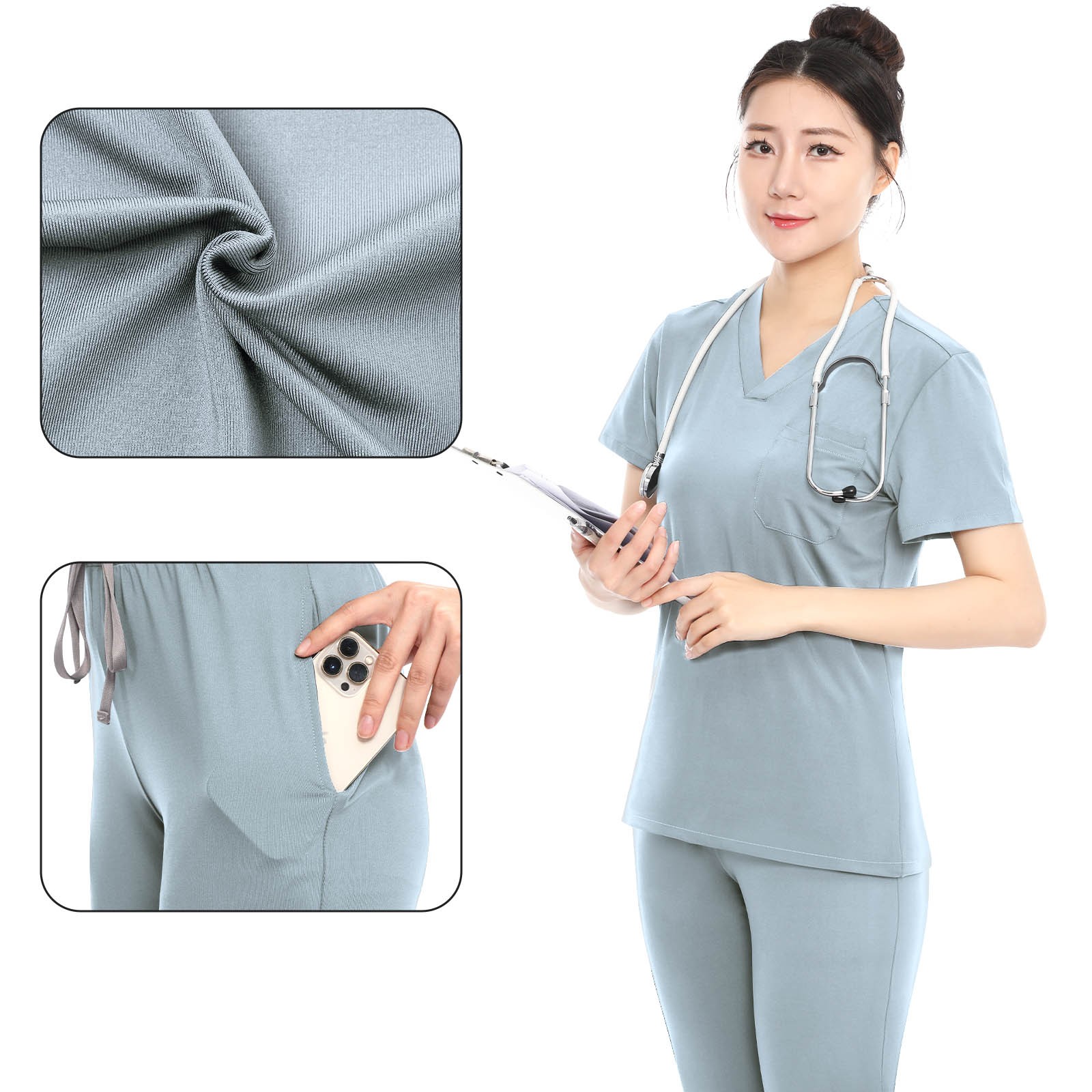 Medical Scrubs Set V-Neck Top Jogger Pants with Stretch Uniform Scrub Suit Yoga
