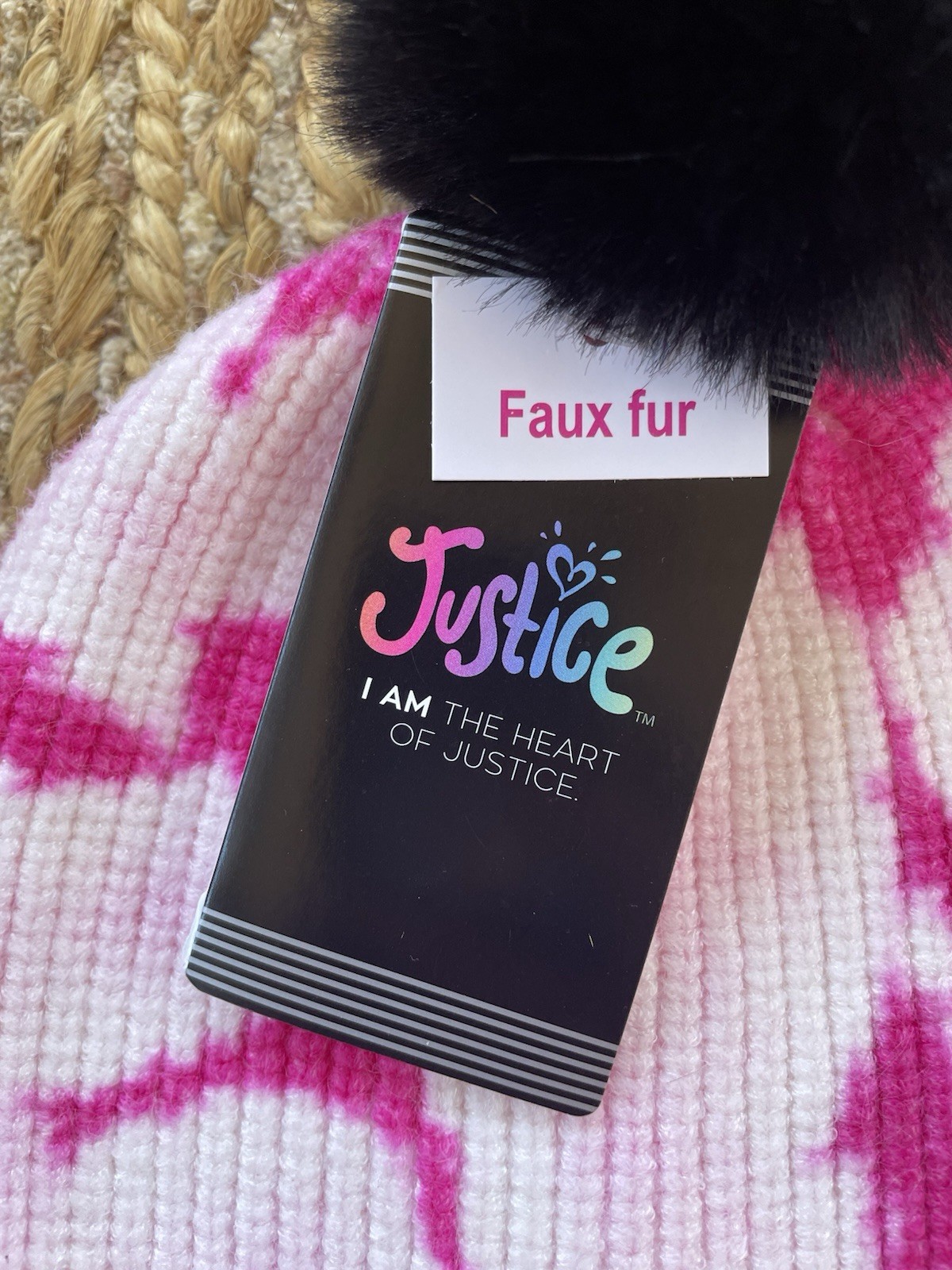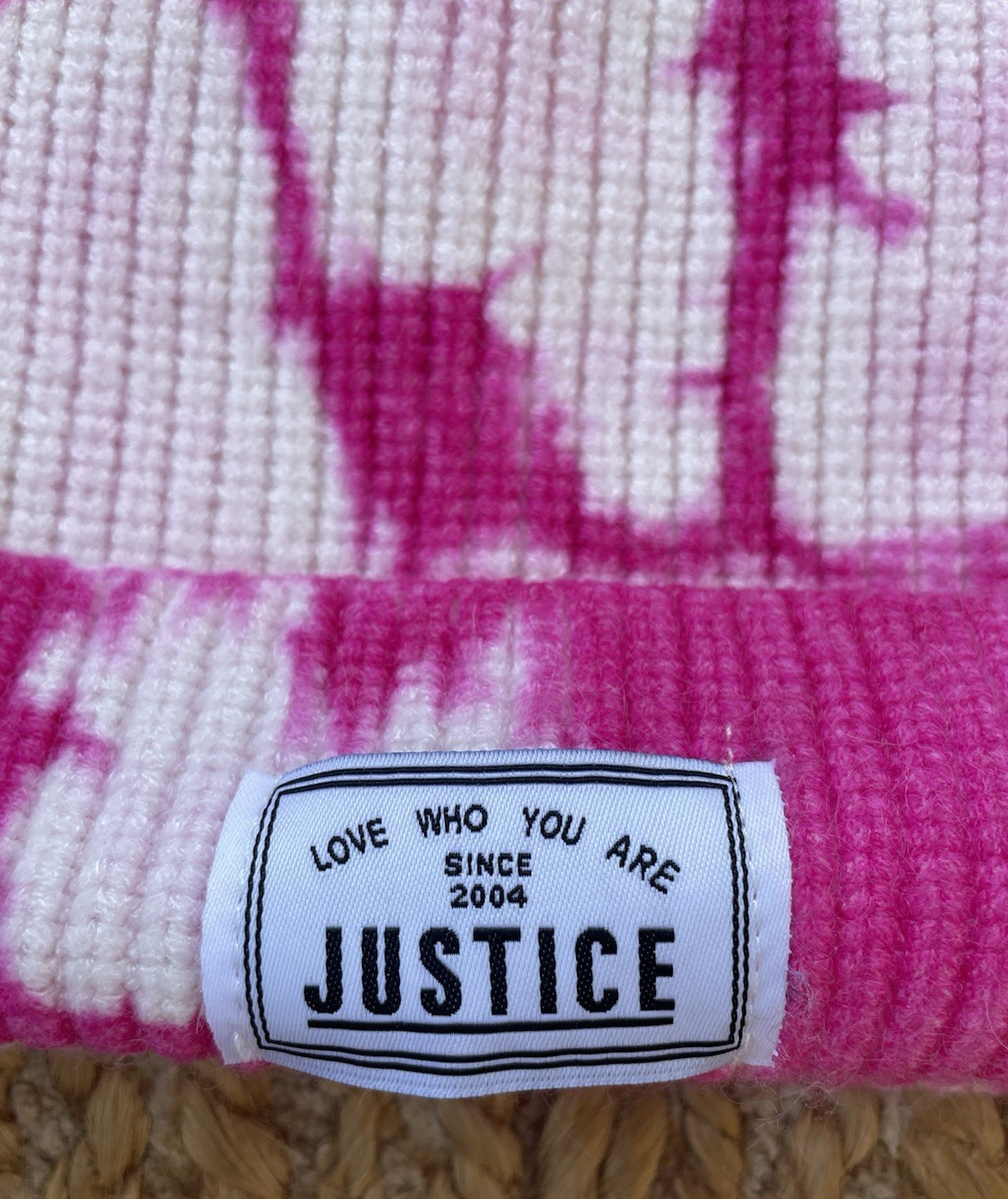 NWT Girls Justice Pink Tie Dye Beanie Cap Faux Fur Pom Pom One Size