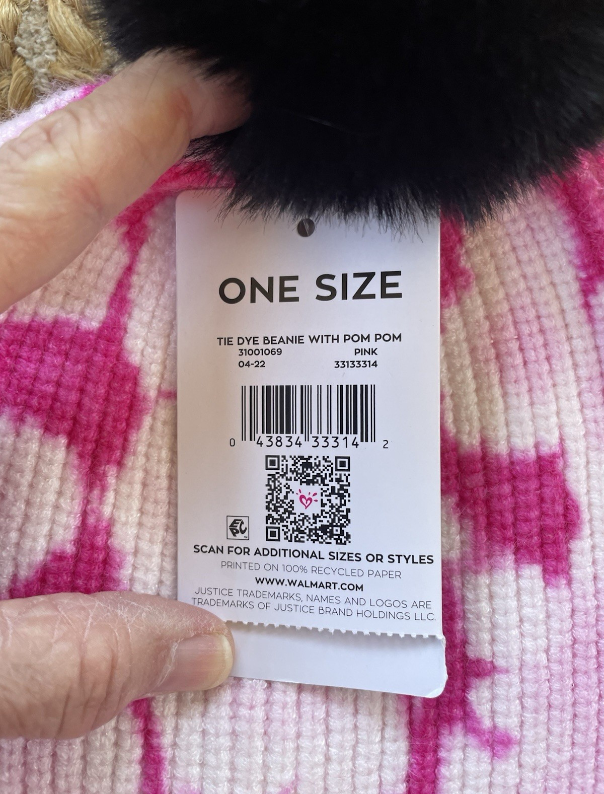 как выглядит NWT Girls Justice Pink Tie Dye Beanie Cap Faux Fur Pom Pom One Size фото