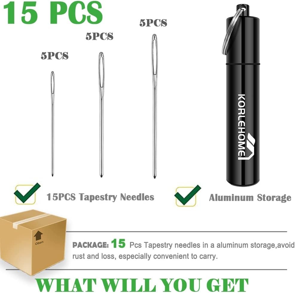 KOLEONHOME 15 Pcs Large Eye Yarn Tapestry Darning Needles, 3 Sizes Black