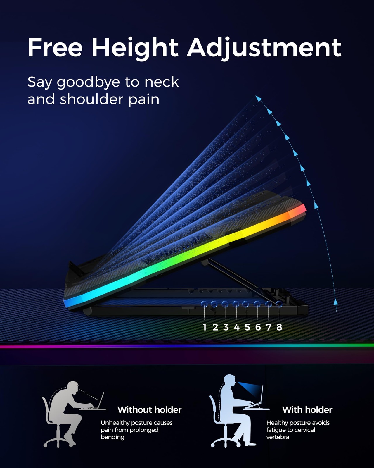 ChillCore Laptop Cooling Pad, RGB Lights Cooler 9 Fans for Blue