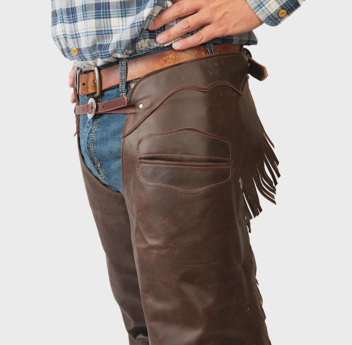 Men Western Style Cowboy Chap Suede Leather Pant