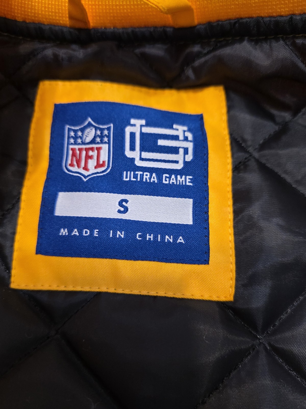 как выглядит Pittsburgh Steelers Mens Small Satin Bomber Jacket Snap Button Yellow Back Logo фото
