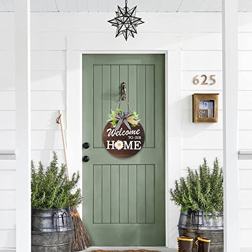 Interchangeable Welcome Sign for Front Door with 4 Seasonal Brown 4 Seasonal