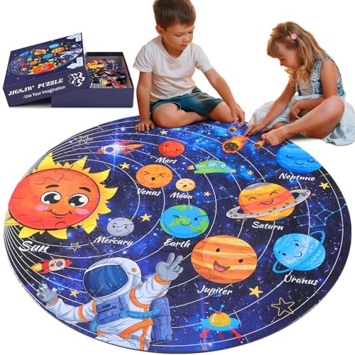 70 Pieces Floor Puzzles Round Large Puzzles for Kids Ages 3-5 5-8 Solar System