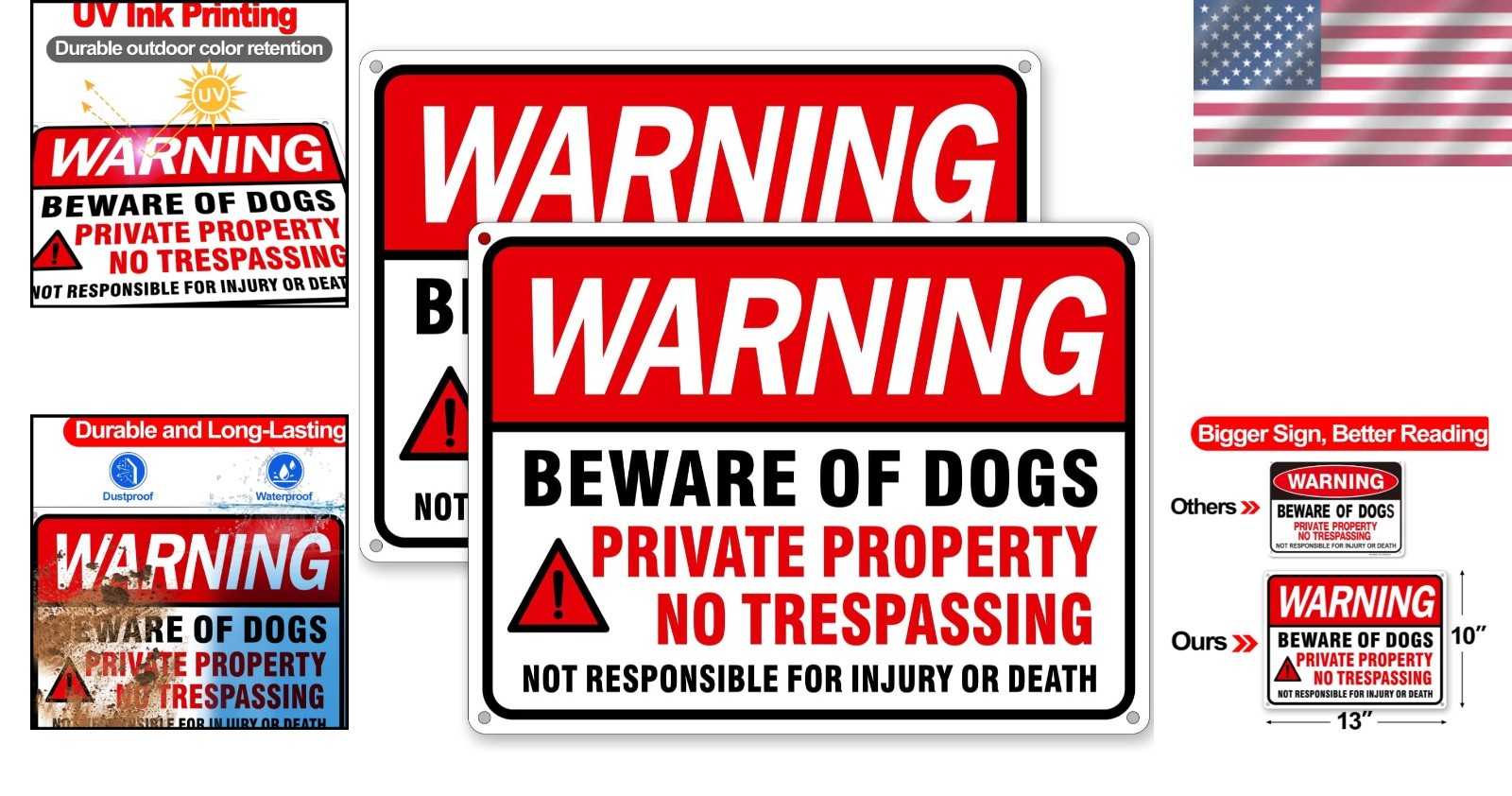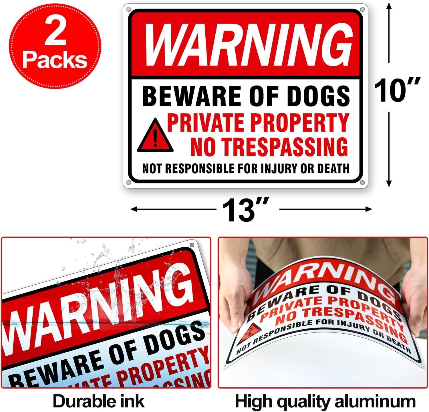 Large 13x9.9 Inch No Trespassing Dog Signs - 2 Pack for Ultimate Security