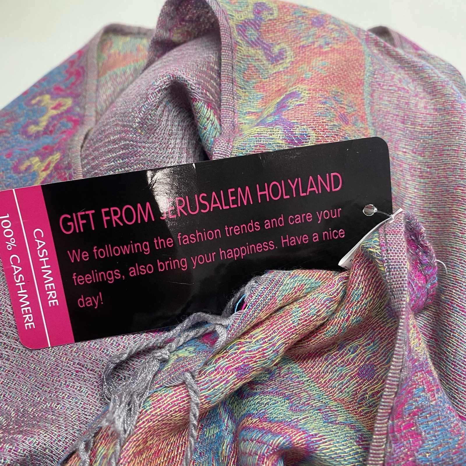 NWT Vintage LOVE JERUSALEM Cashmere Scarf Wrap Multicolor Floral Fringe 28 x 70