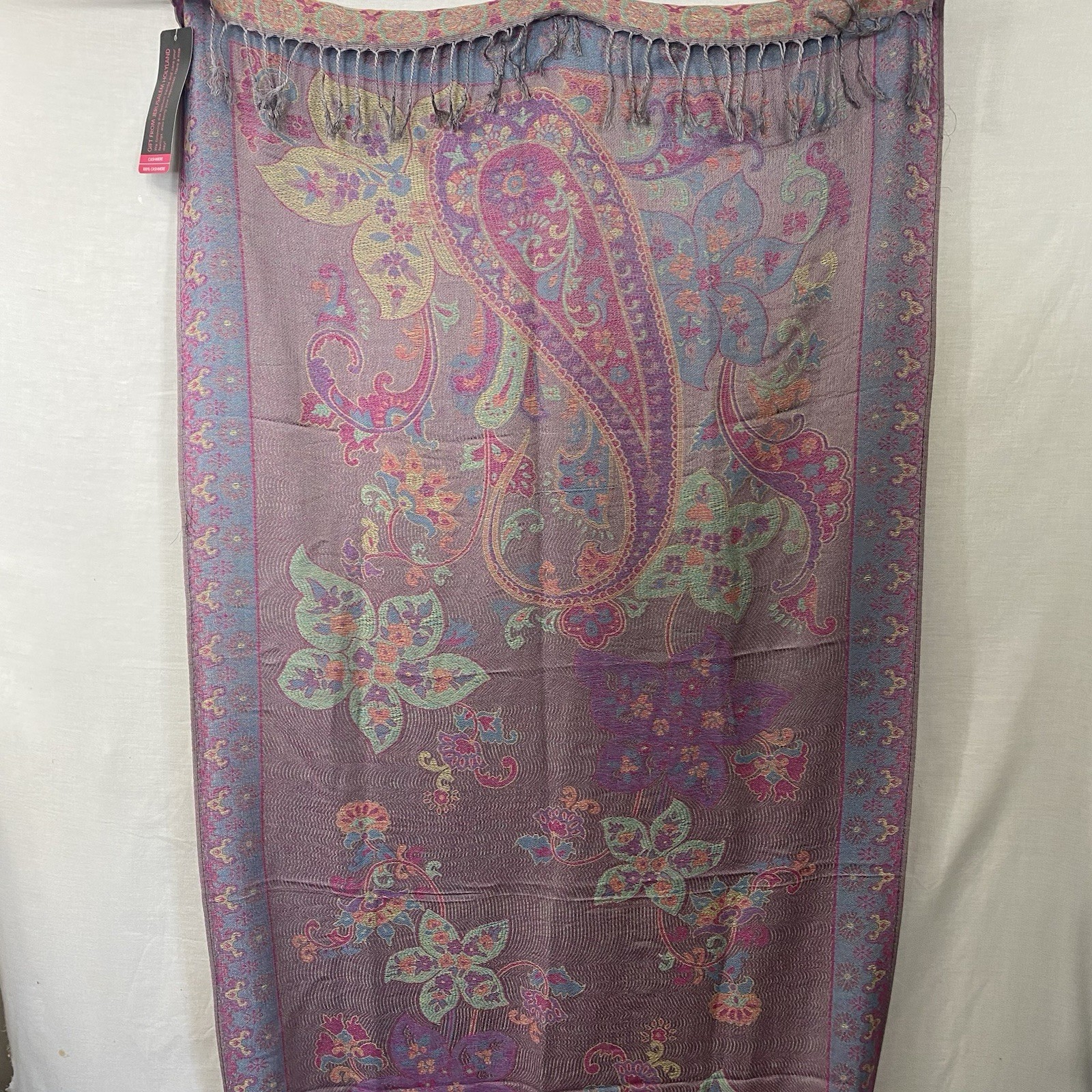 как выглядит NWT Vintage LOVE JERUSALEM Cashmere Scarf Wrap Multicolor Floral Fringe 28 x 70 фото