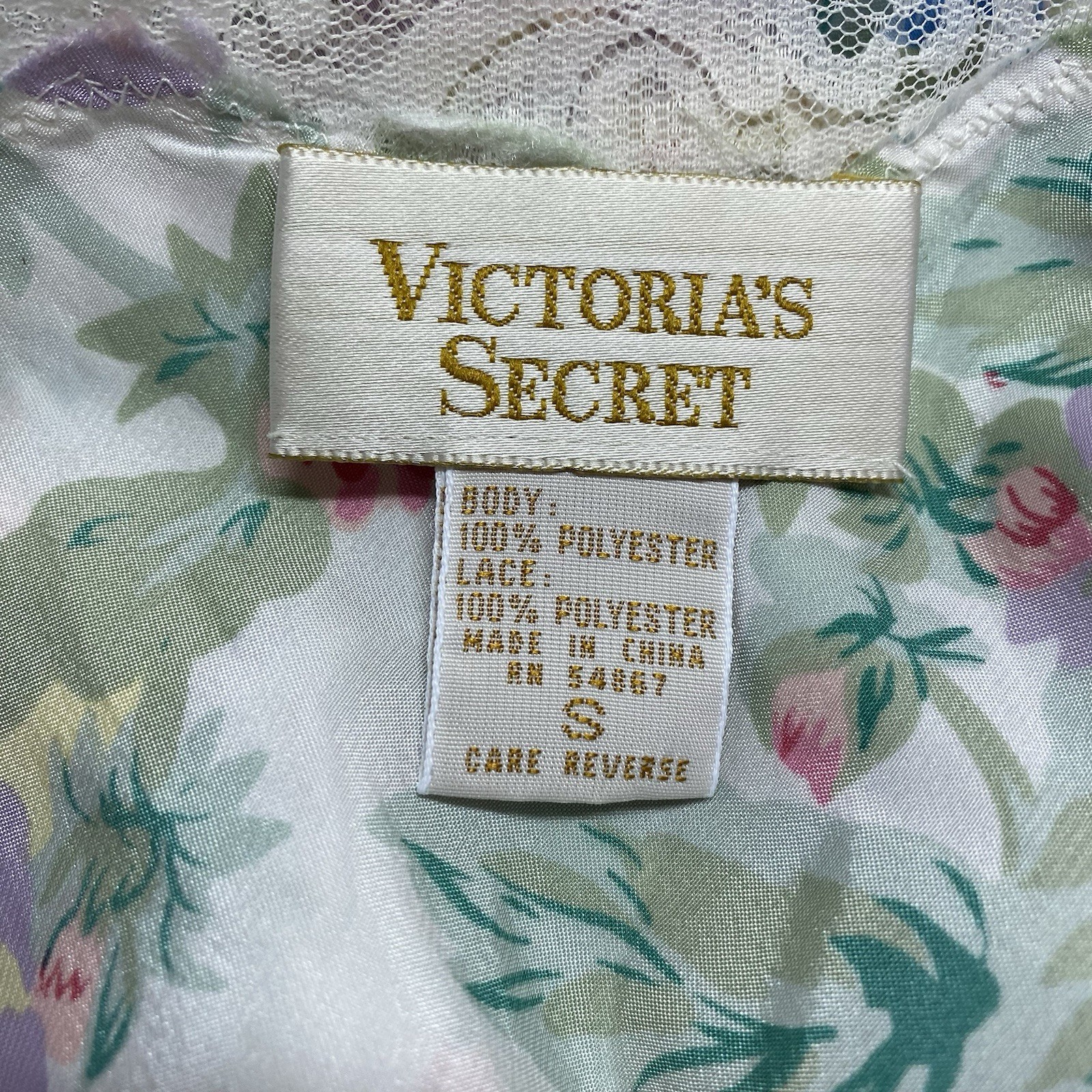 Vintage Gold Label Victorias Secret Slip Dress Nightgown Lace Floral Print Sz Sm