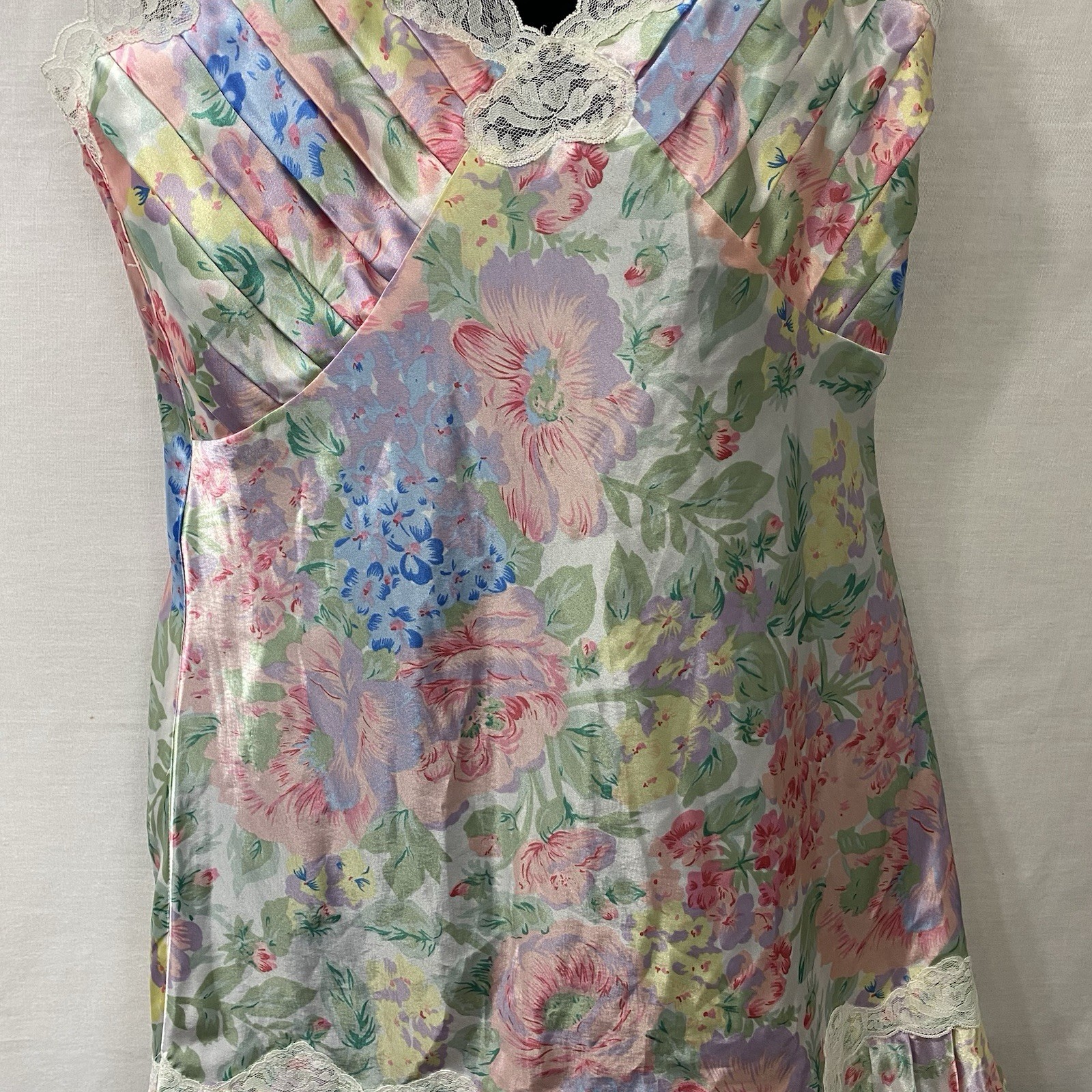 как выглядит Vintage Gold Label Victorias Secret Slip Dress Nightgown Lace Floral Print Sz Sm фото