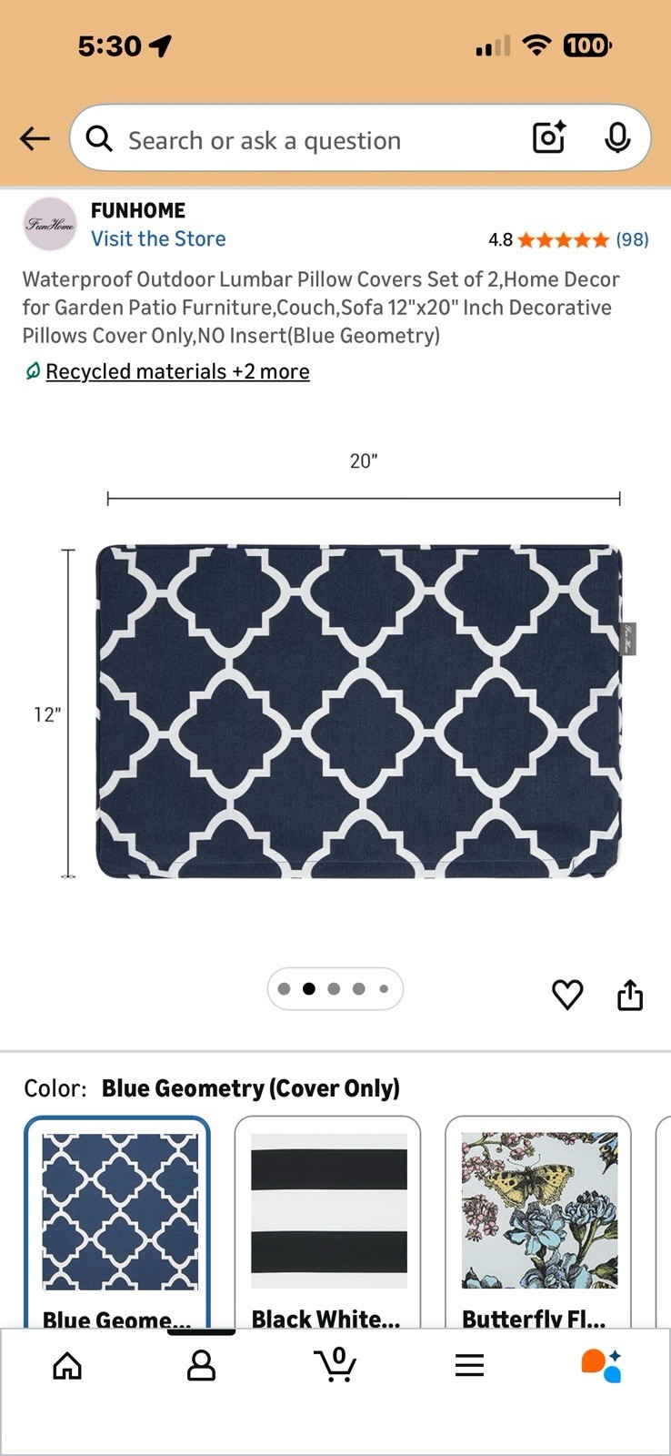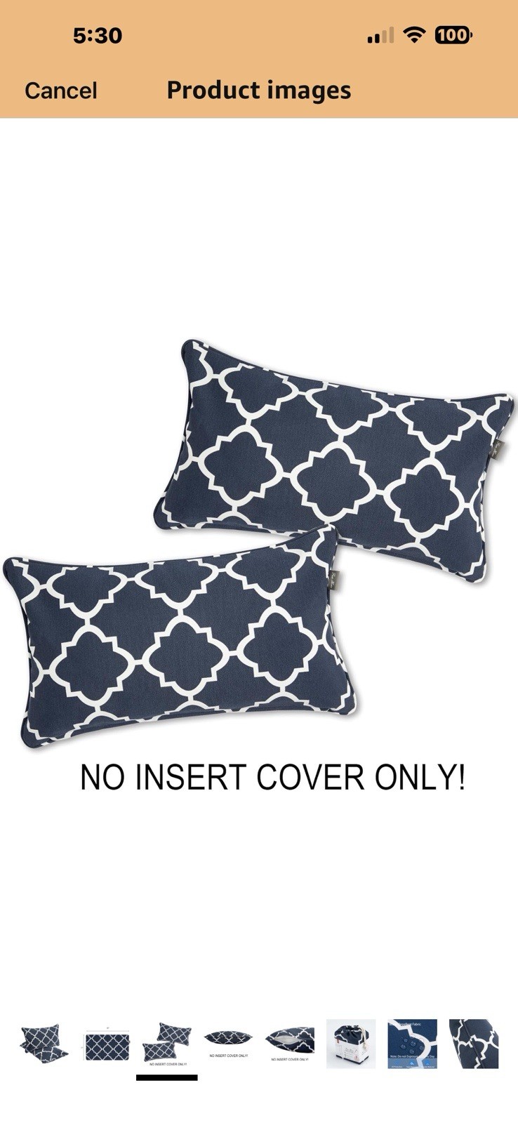 как выглядит Waterproof Outdoor Lumbar Pillow covers 20" x 12" Pack of 2 Blue Geometric фото