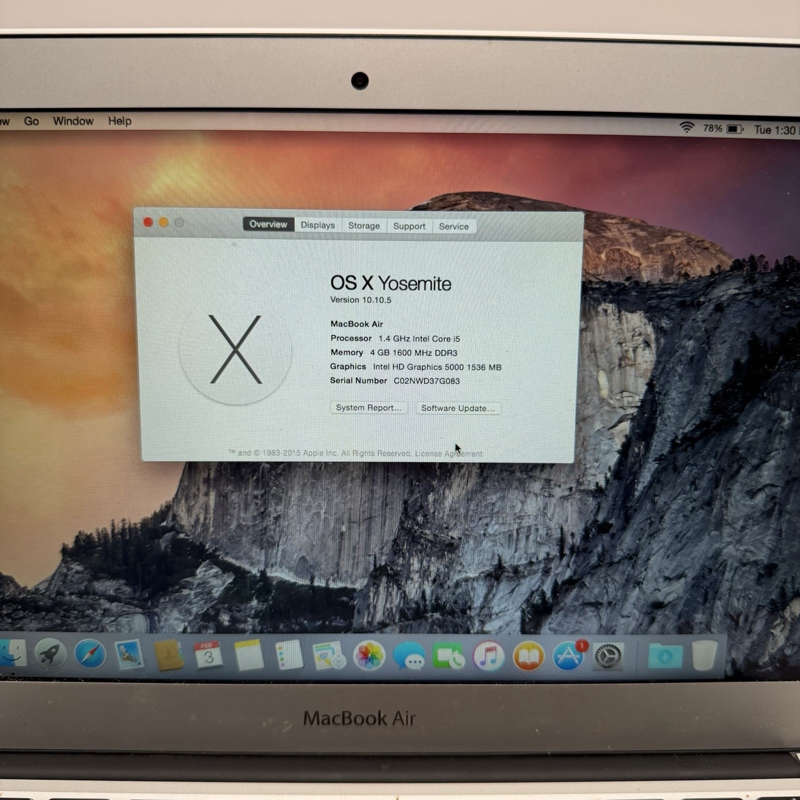 Apple Macbook Air 11 core i5 1.4GHZ 4GB RAM 128GB SSD MacOS Yosemite