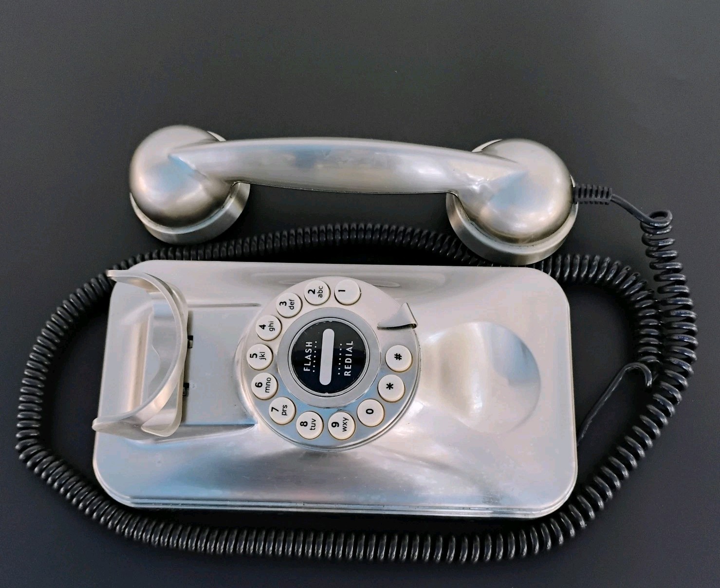 Grand Wall Phone Brushed Chrome Stainless Crosley Retro Push Buttons landline