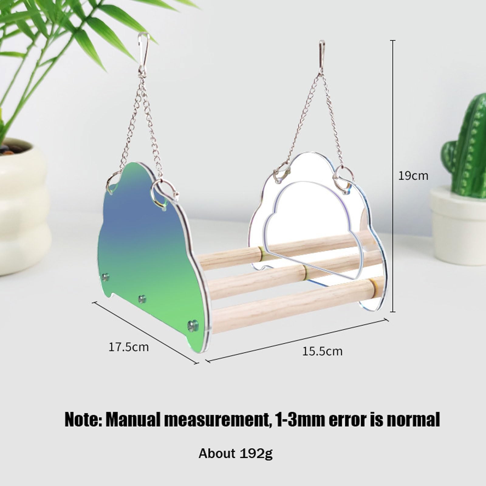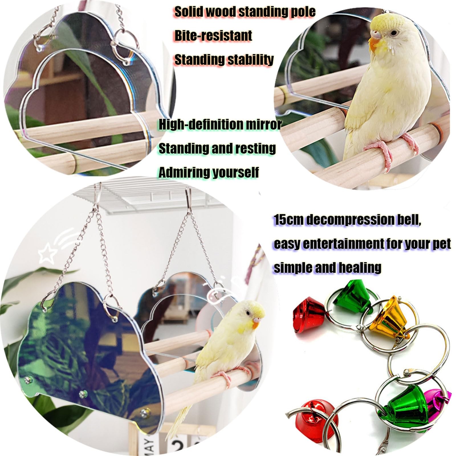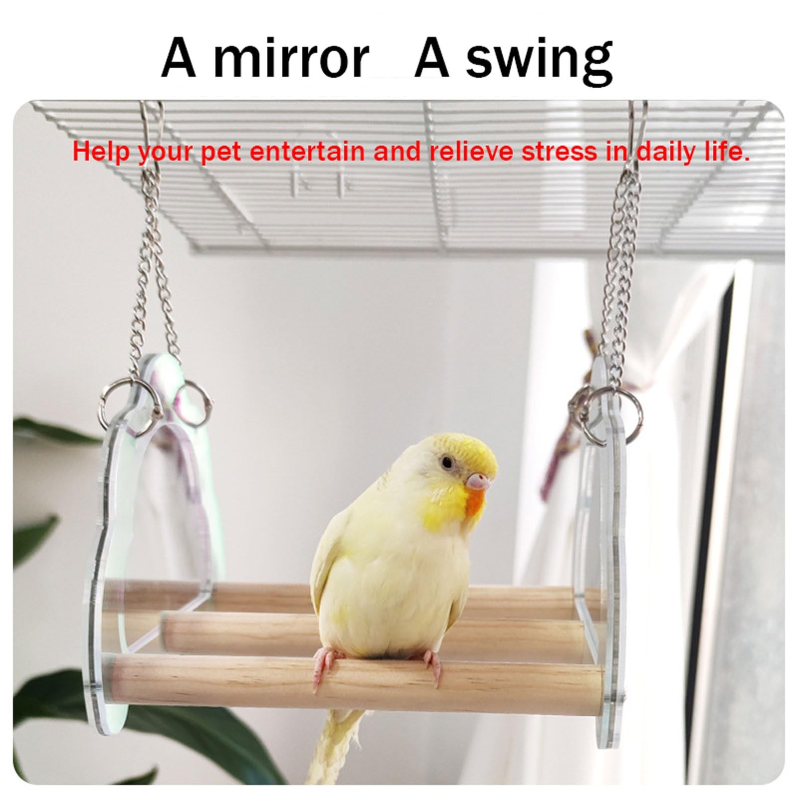 Parrot Toy Swing with Perch, Bird cage Accessory Mirror, White