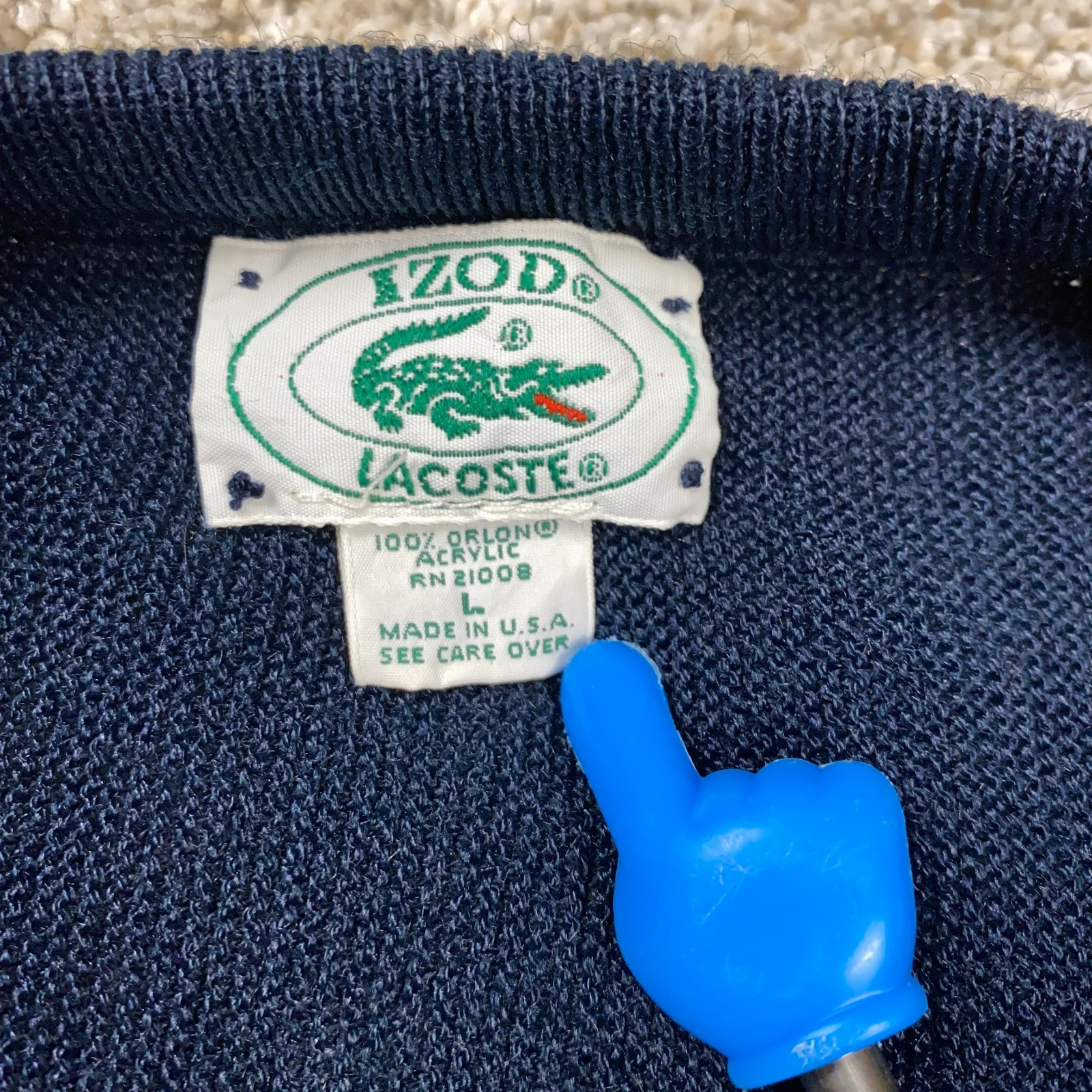 как выглядит Vintage Lacoste Izod V-Neck Sweater Mens Large Pullover Navy 90s Made in USA фото