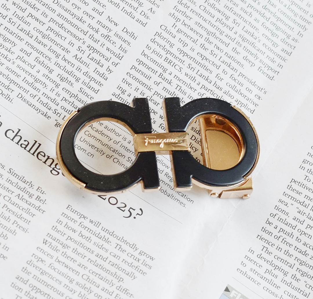 Black with gold Ferragamo Men's Belt Buckle for 34-35mm leather strap
