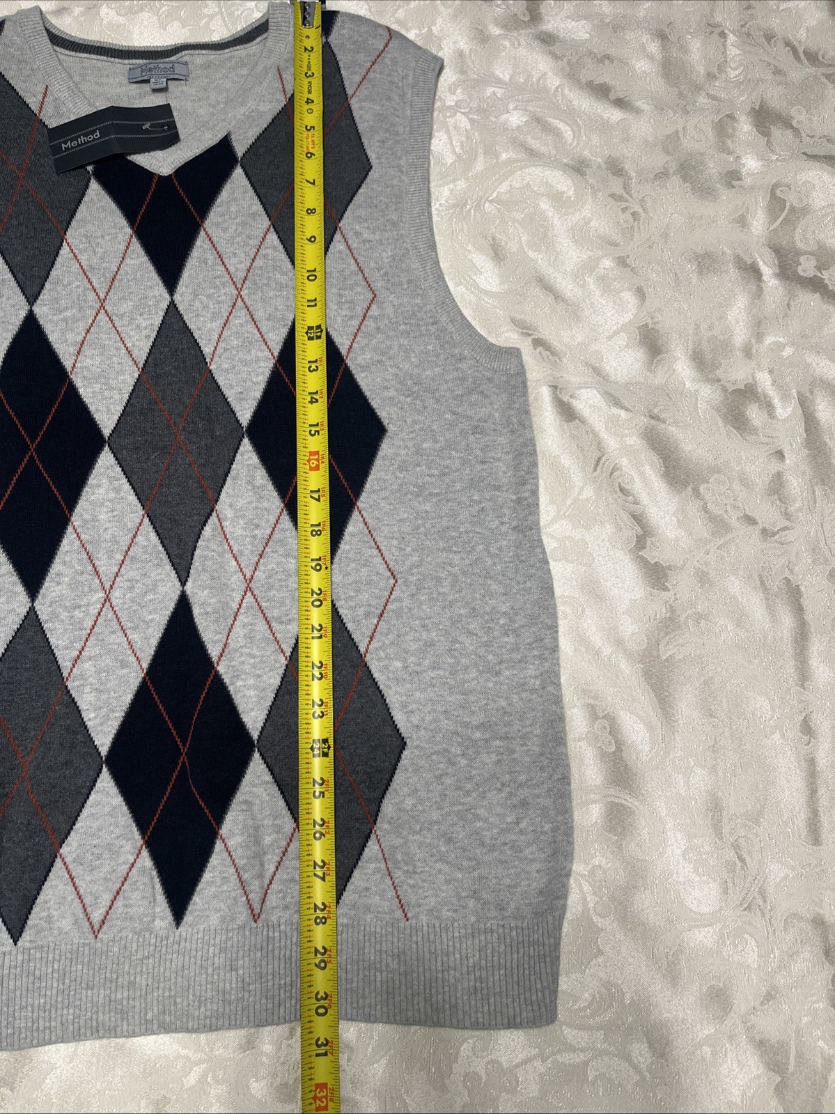 Method Men's Sweater Vest Size XL Argyle Golf Preppy V Neck Sleeveless Pullover