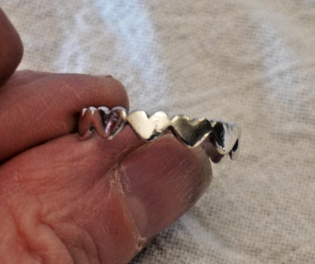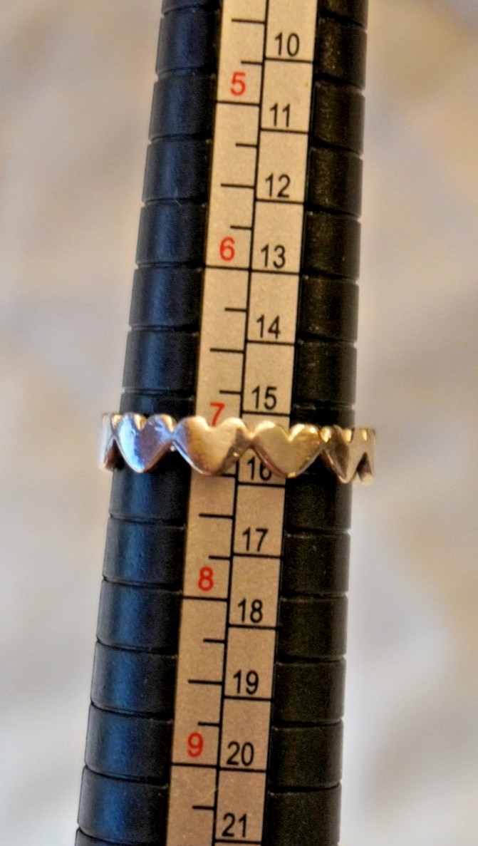 VTG PV 925 Sterling Silver Heart Eternity Band Ring Size 7 Dainty Connected 3