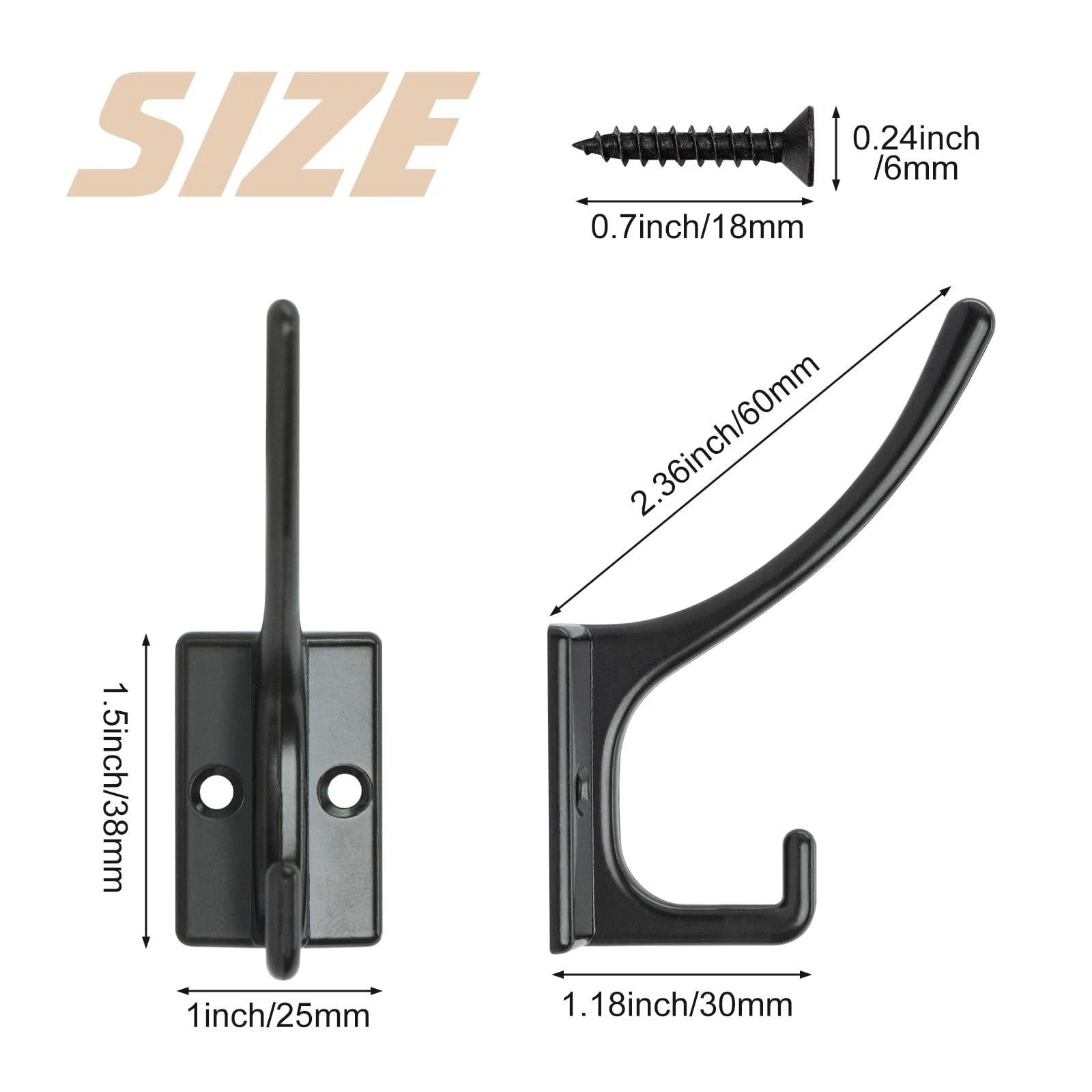 Included Components: 12 Pack Black Double Coat Hooks With 24 Screws