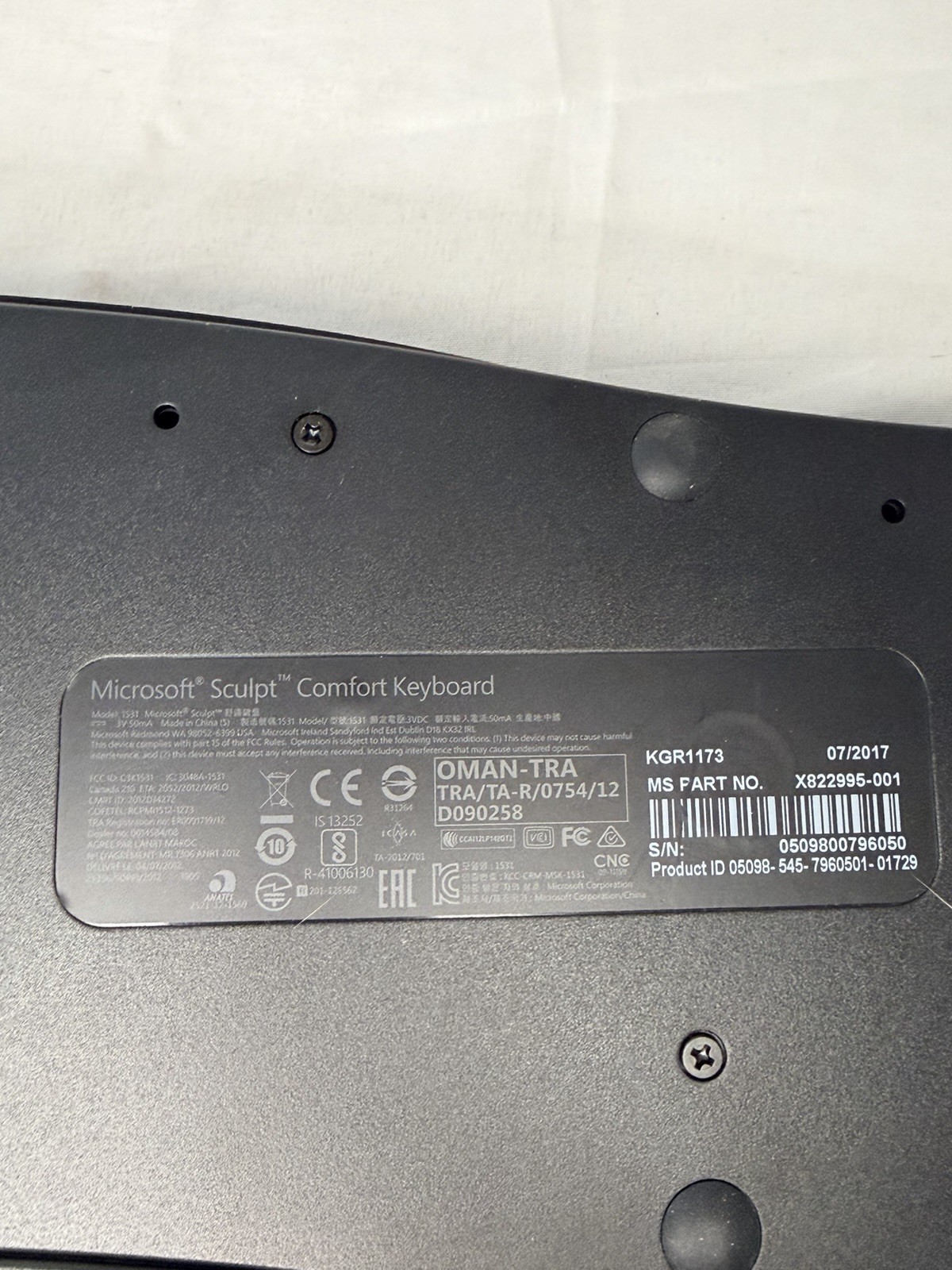 Microsoft Sculpt Comfort Wireless Ergonomic Keyboard USB Receiver Model 1531