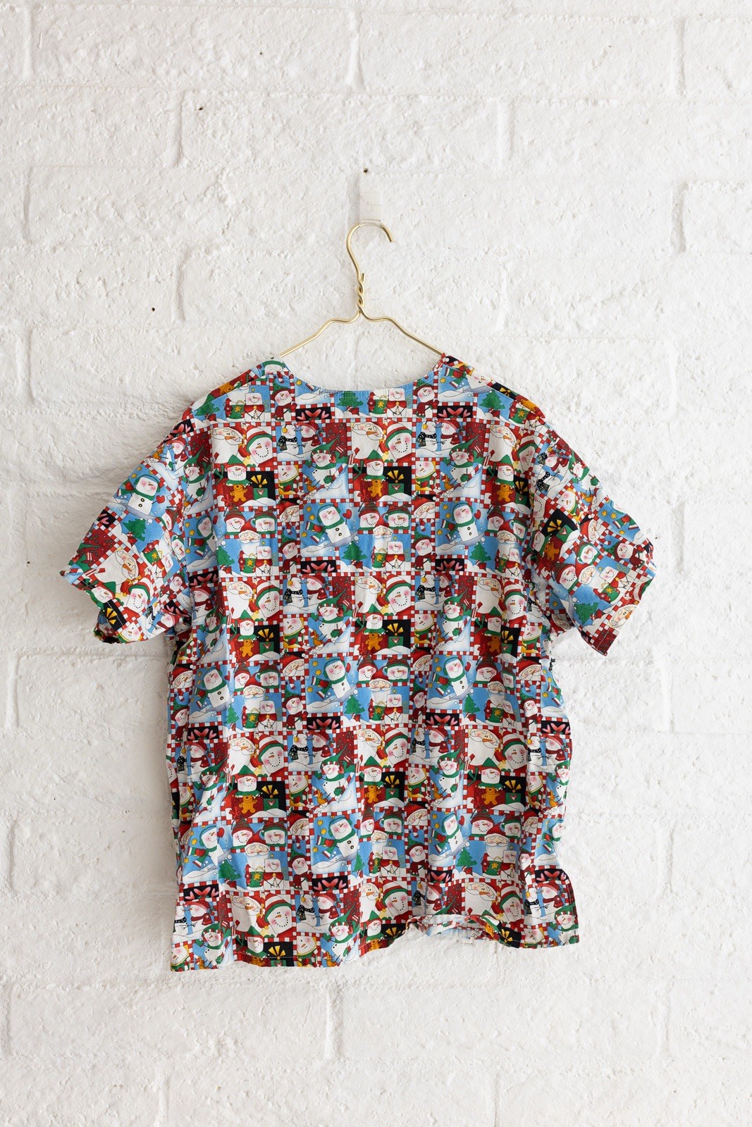 V Life Large Scrub Top Snowmen and Winter Themed and Santa Claus