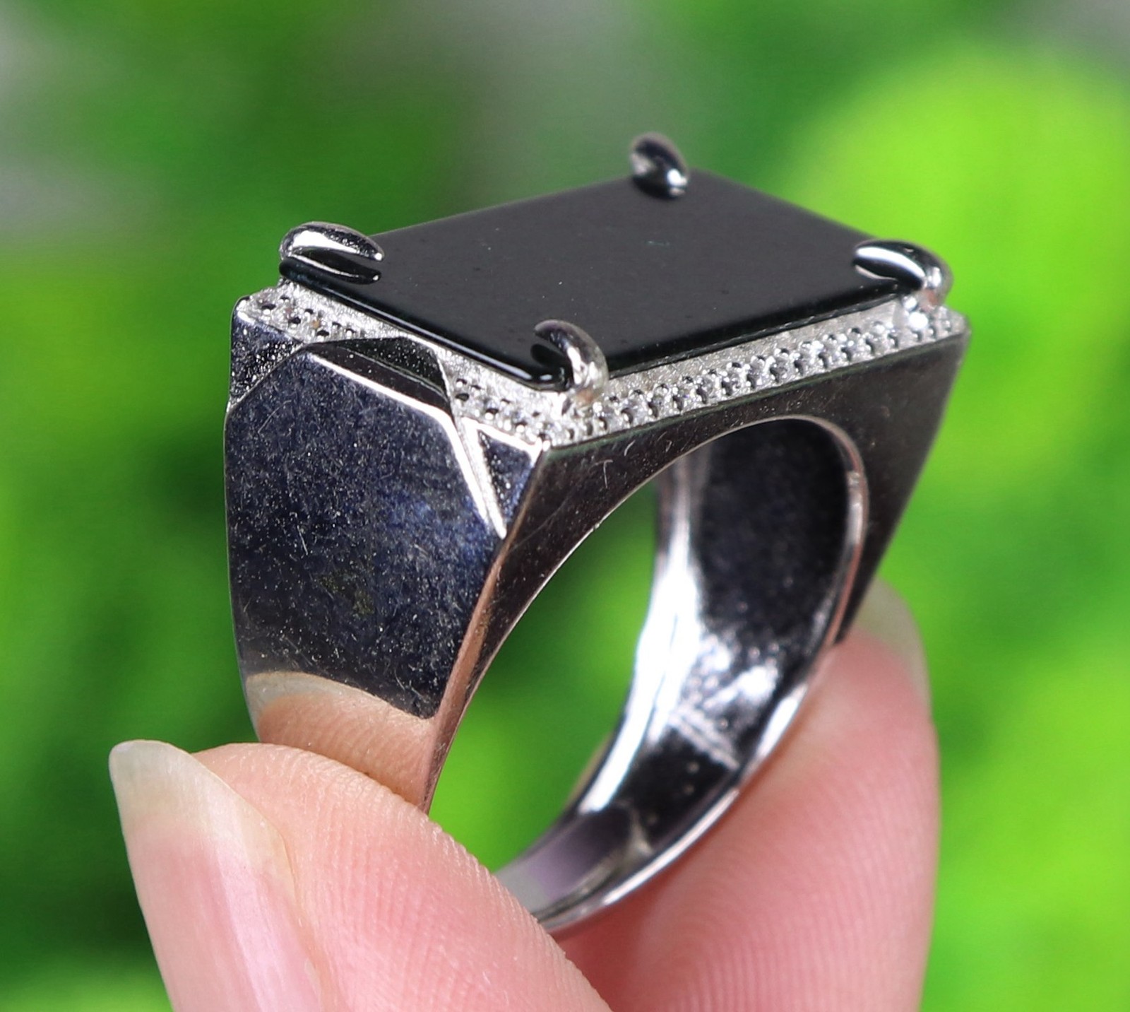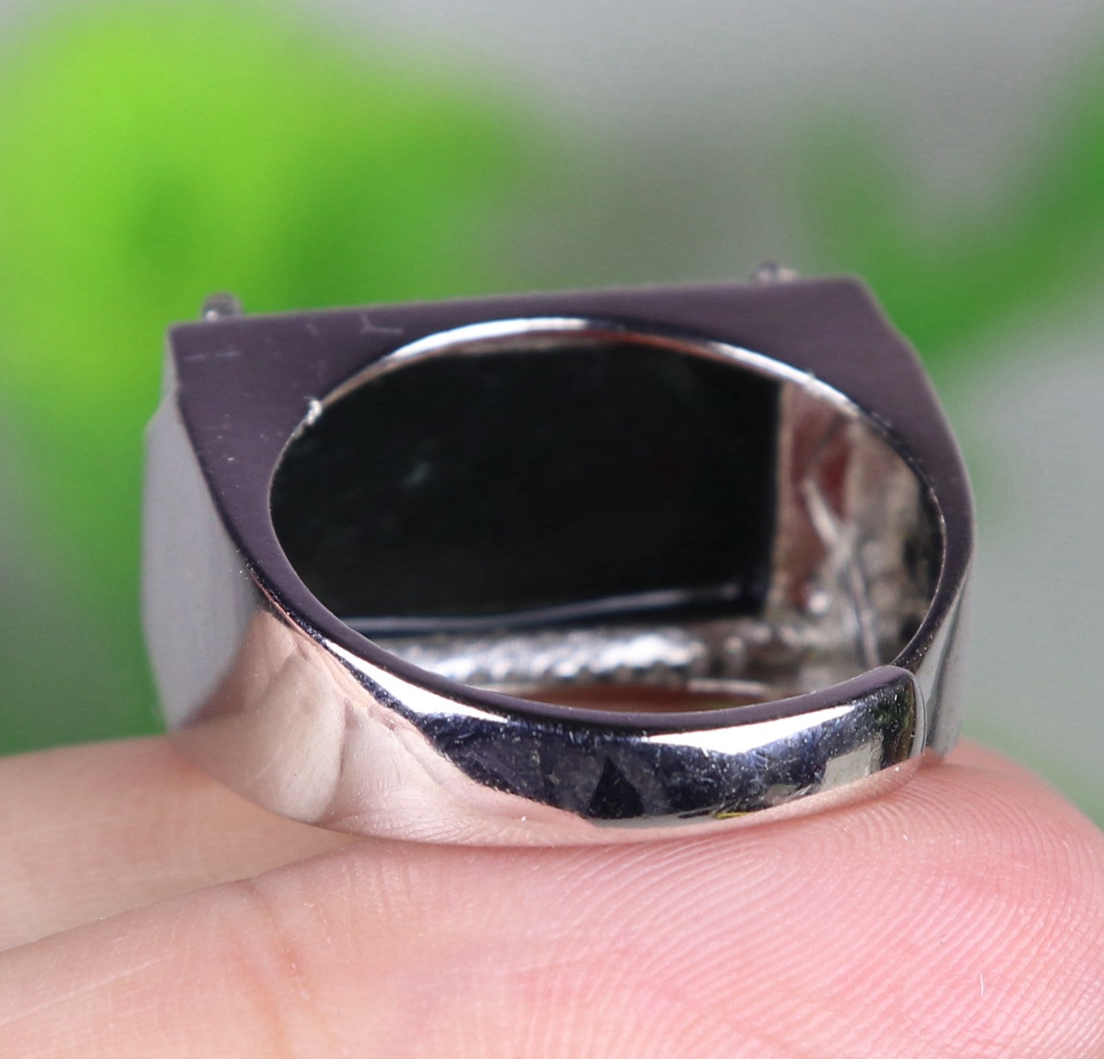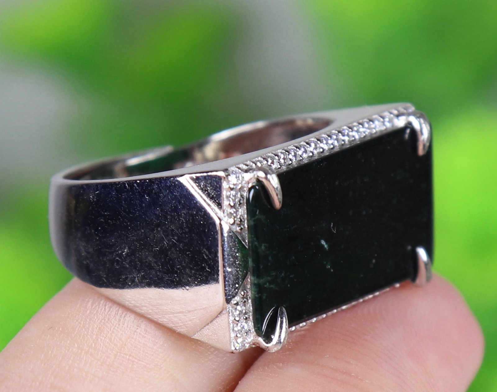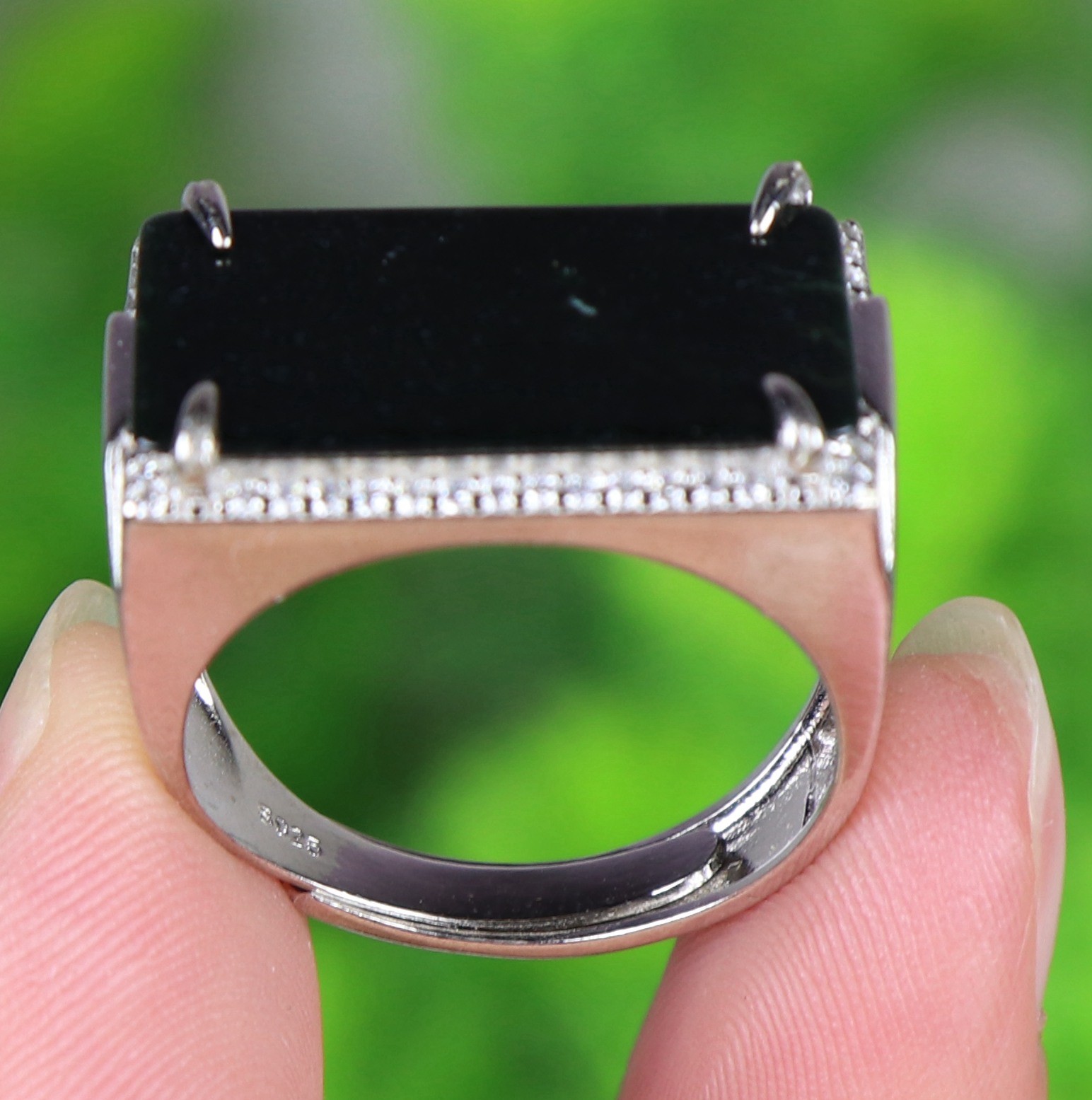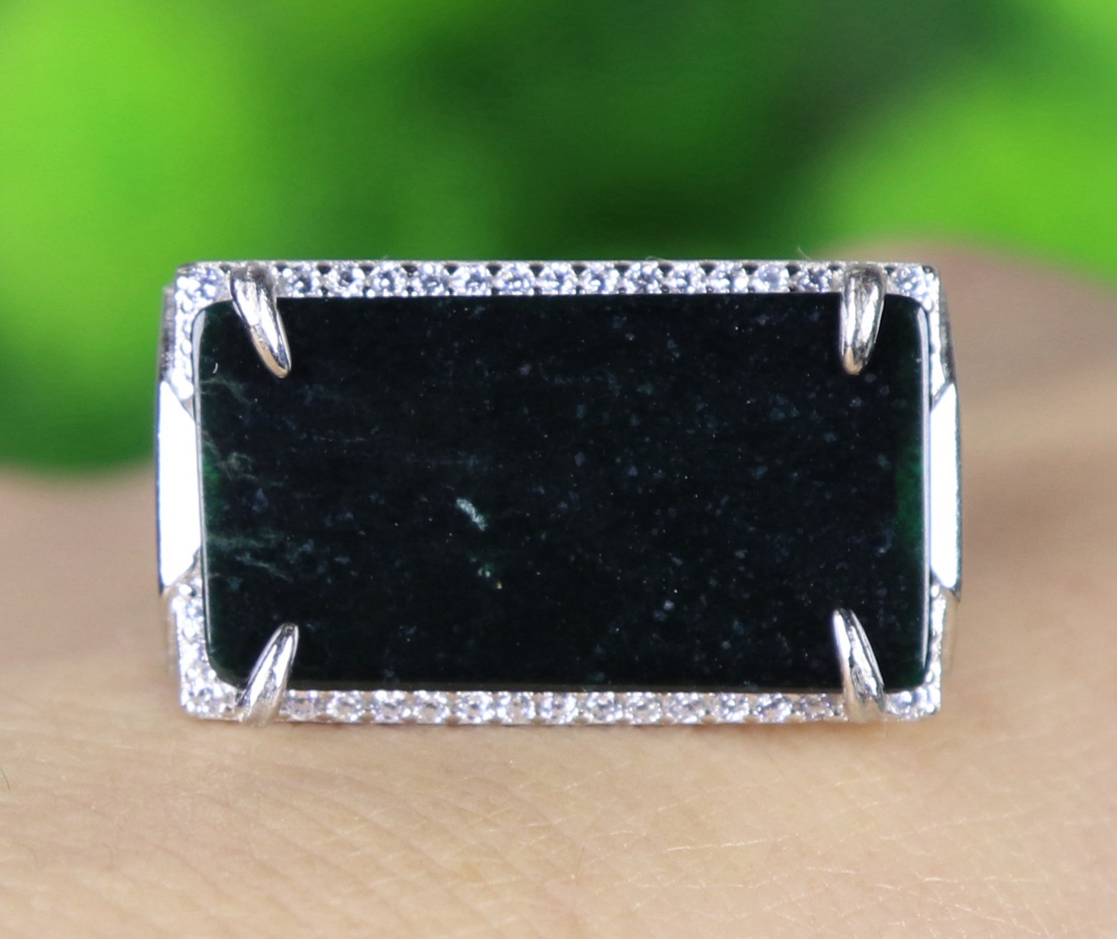 как выглядит 925 Silver Certified Black Natural A Jadeite ring Adjustable Diameter 18114a фото