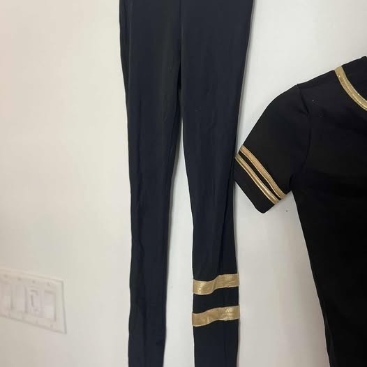 как выглядит Set of 2 Black Gold Dance Costume Sets  Jersey Top Leggings  Hip Hop/Jazz/ фото