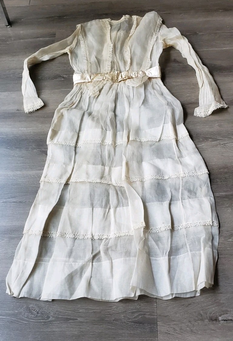 VTG 1900s Antique Edwardian Victorian Wedding Dress XS/XXS Study Design DAMAGED