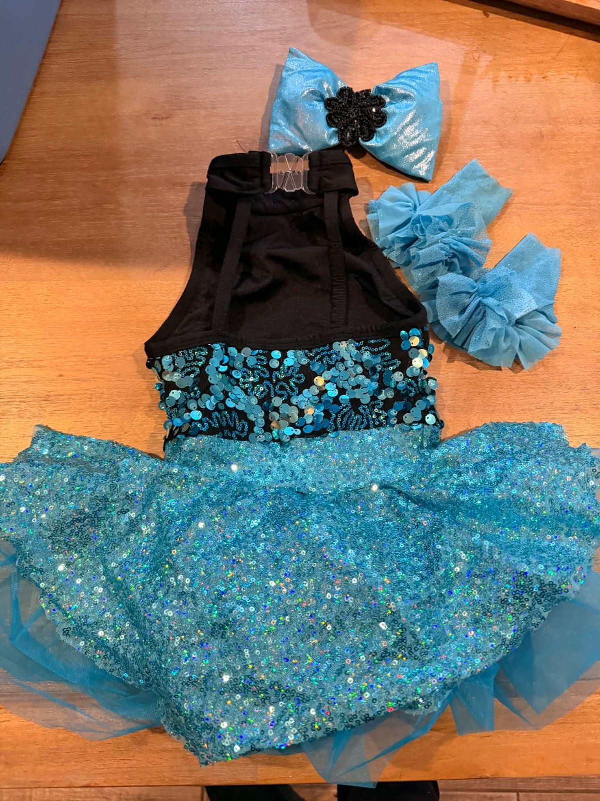 A Wish Come True Turquoise Sequin Tutu Dance Costume Set Black Halter Top Sp