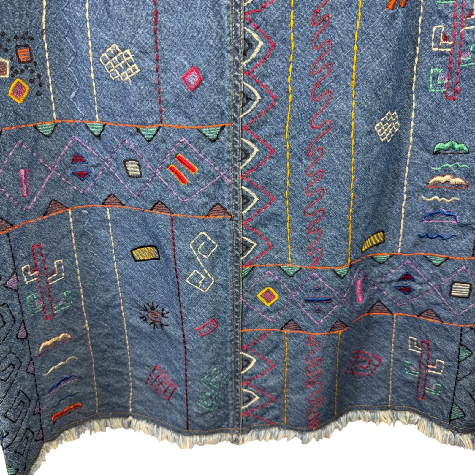 как выглядит Chicos Design Vintage Embroidered Denim Maxi Skirt Size 0 XS Made in India фото