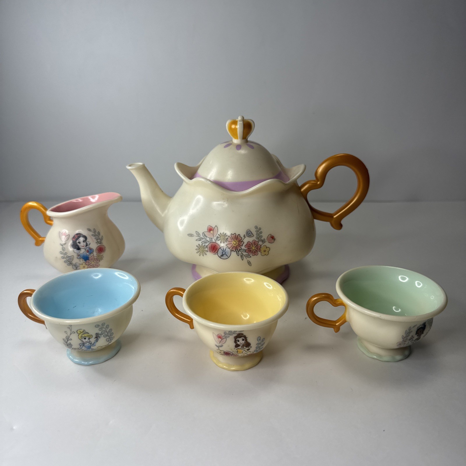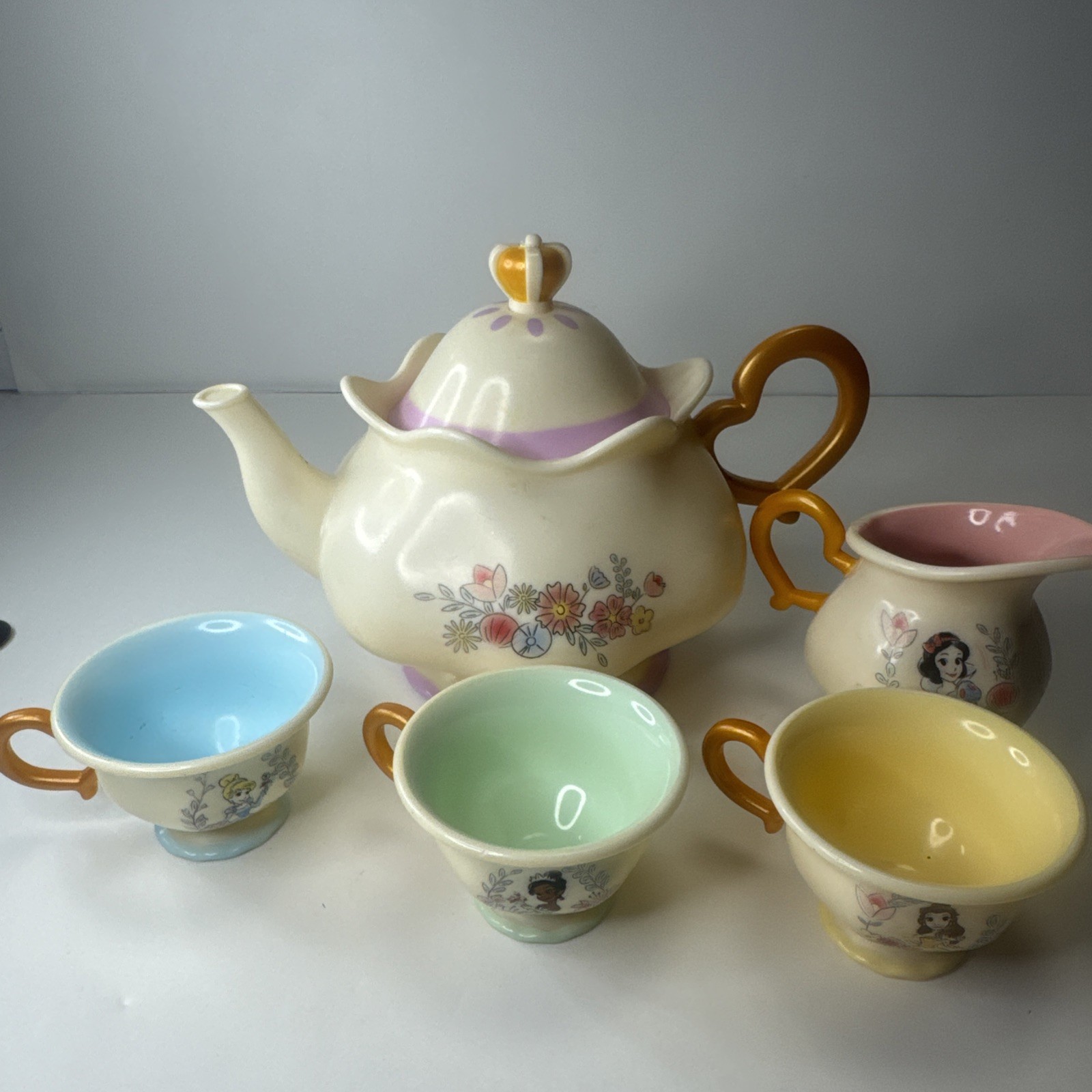 как выглядит Disney Princess Magical Tea Set Cinderella Belle Tiana Snow White Read Desc фото