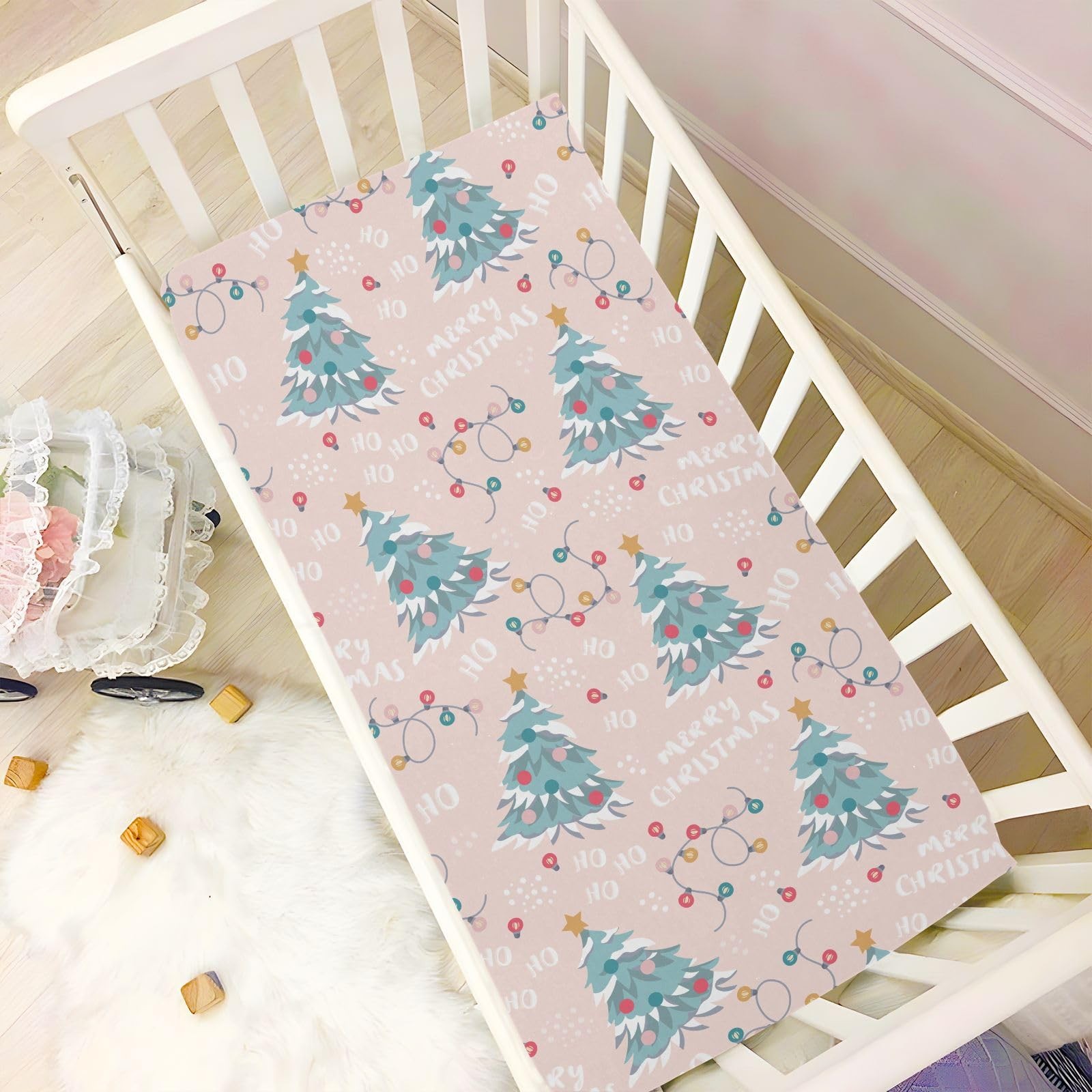 Stretchy Crib Sheet for Baby Boy Girl,Merry Christmas Portable Mini Fitted Pa...